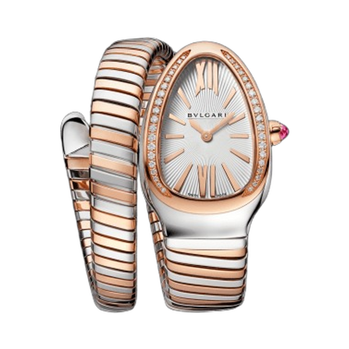 (W) 불가리 세르펜티 투보가스 쿼츠 35mm 워치 스테인리스 스틸 로즈 골드 화이트 다이아몬드