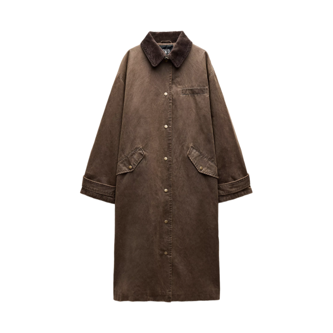 (W) 자라 왁스드 이펙트 트렌치 코트 브랜디