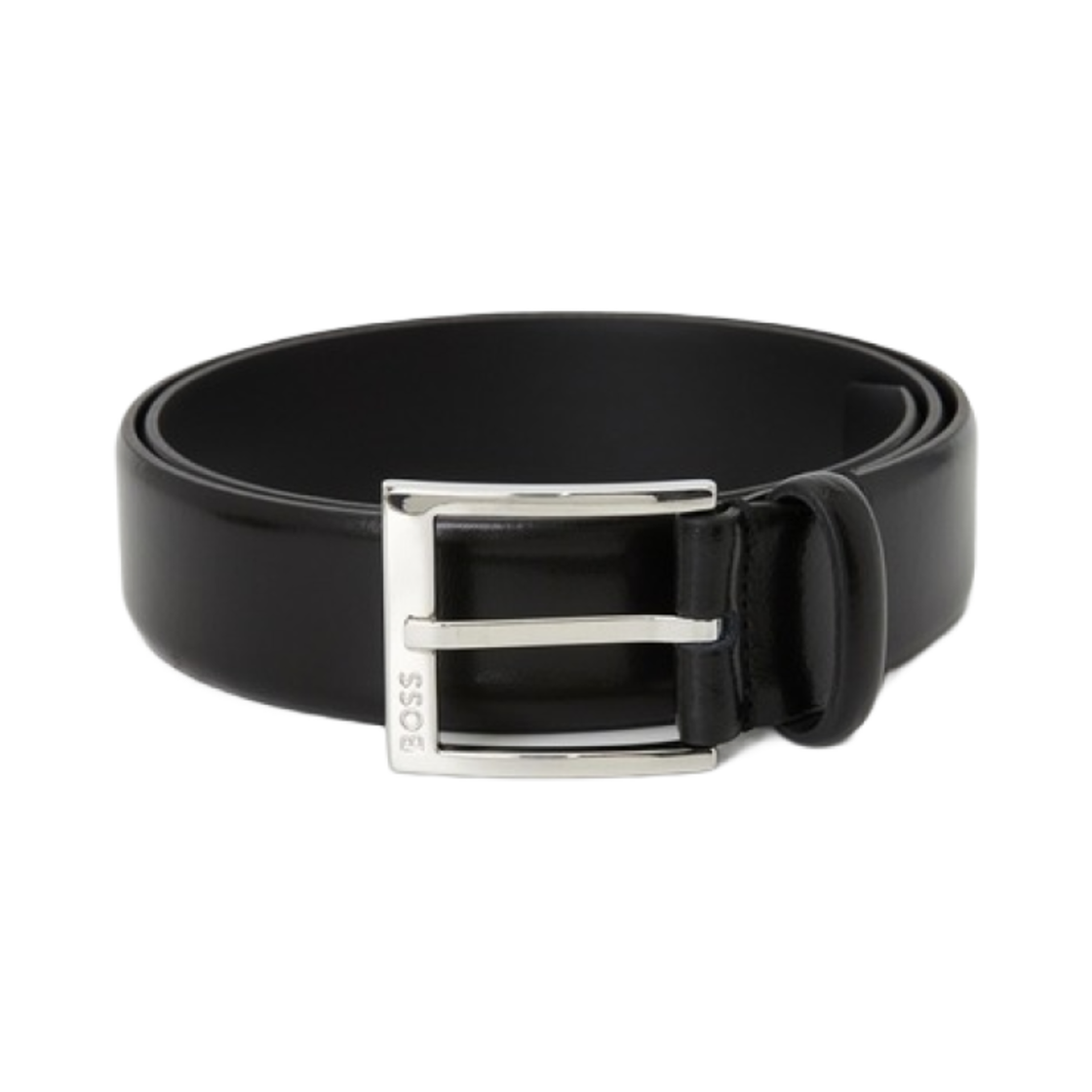 휴고 보스 브랜디드 버클 이탈리안 레더 벨트 블랙