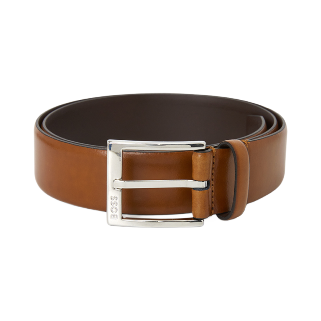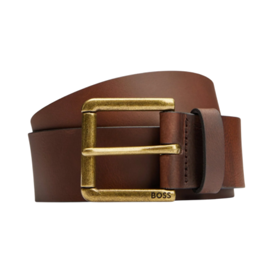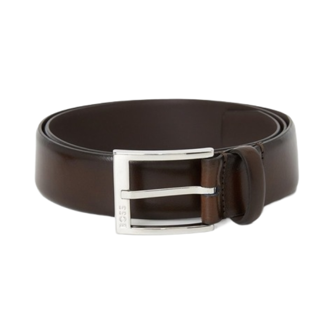 휴고 보스 브랜디드 버클 이탈리안 레더 벨트 브라운