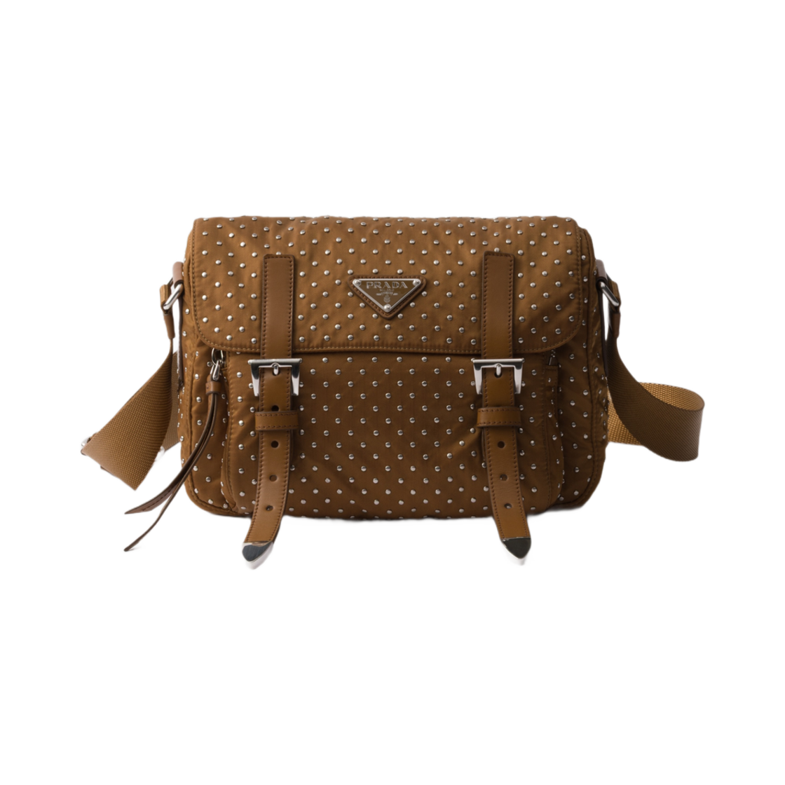 프라다 리에디션 리나일론 미니백 스터드 브랜디