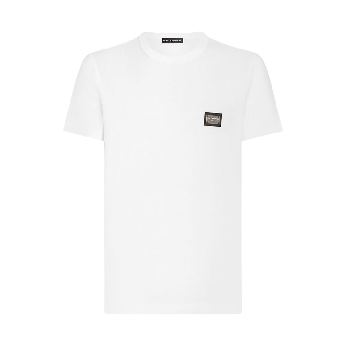 돌체 앤 가바나 브랜디드 태그 코튼 티셔츠 화이트