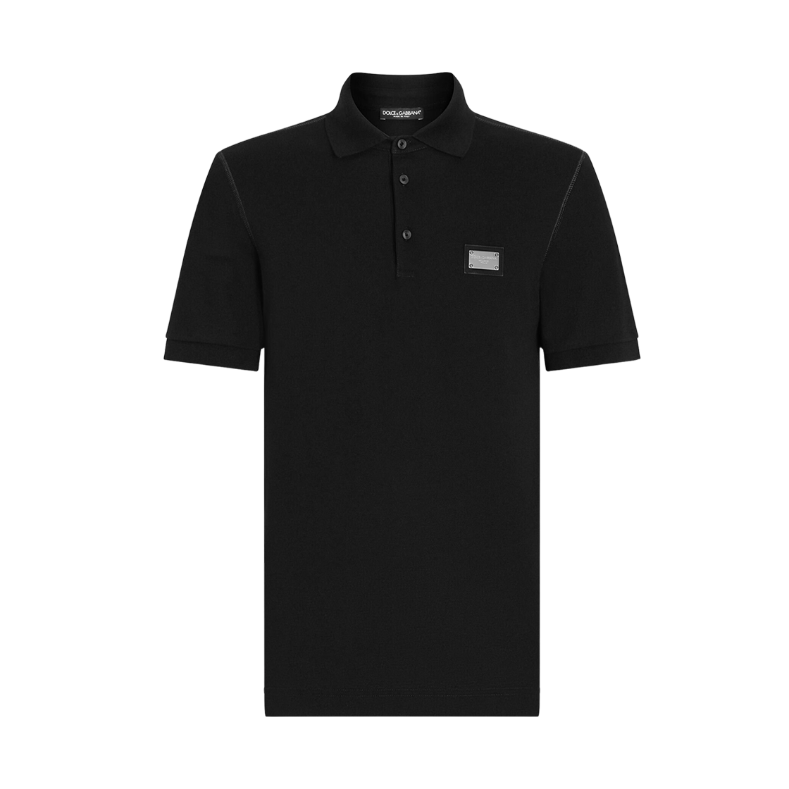 돌체 앤 가바나 브랜디드 태그 코튼 피케 폴로 셔츠 블랙