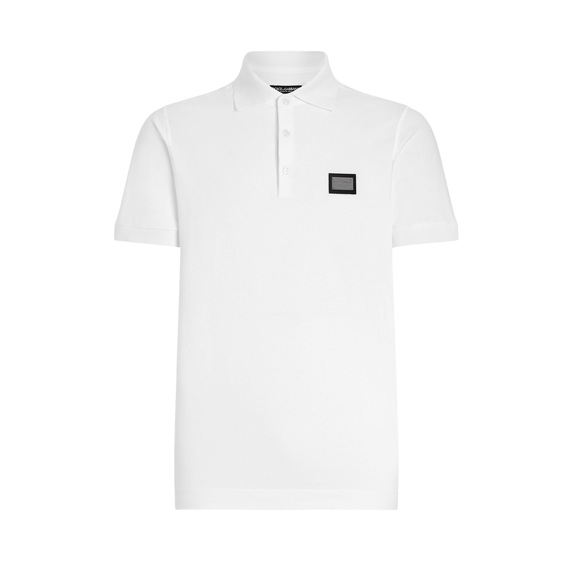 돌체 앤 가바나 브랜디드 태그 코튼 피케 폴로 셔츠 화이트