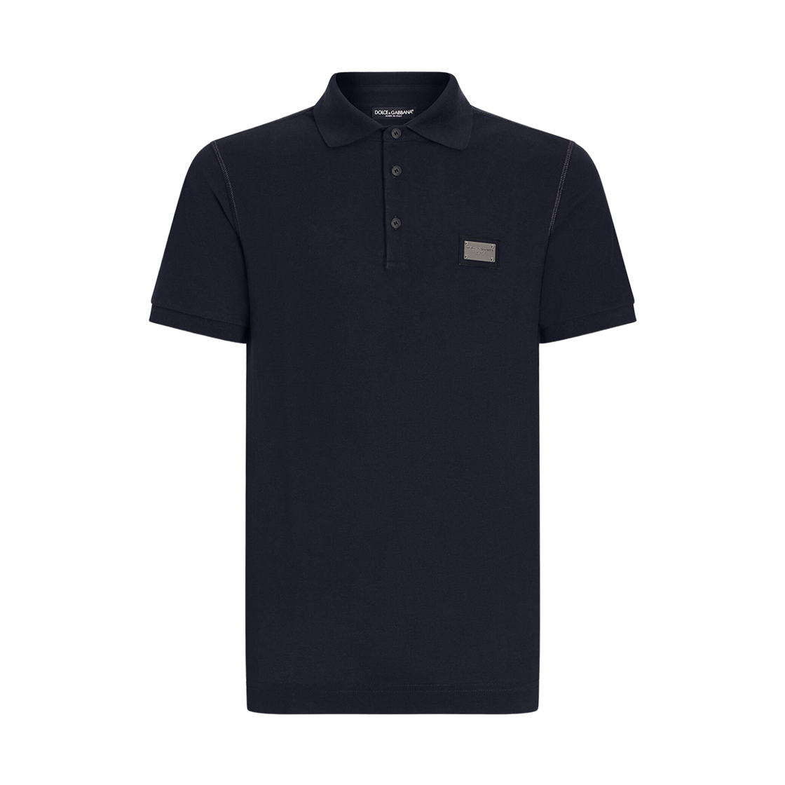 돌체 앤 가바나 브랜디드 태그 코튼 피케 폴로 셔츠 블루