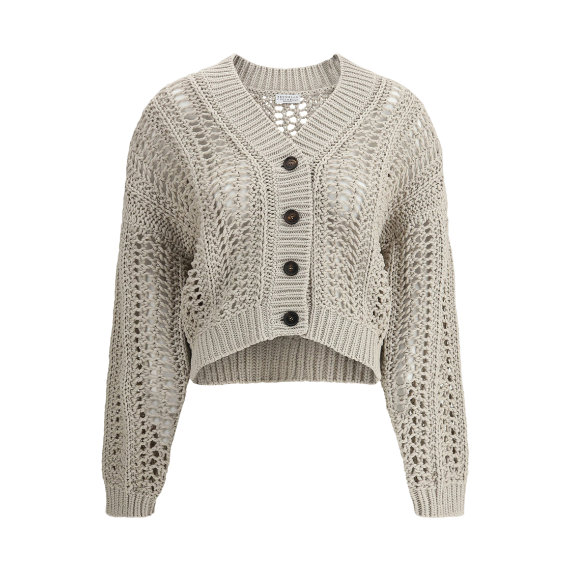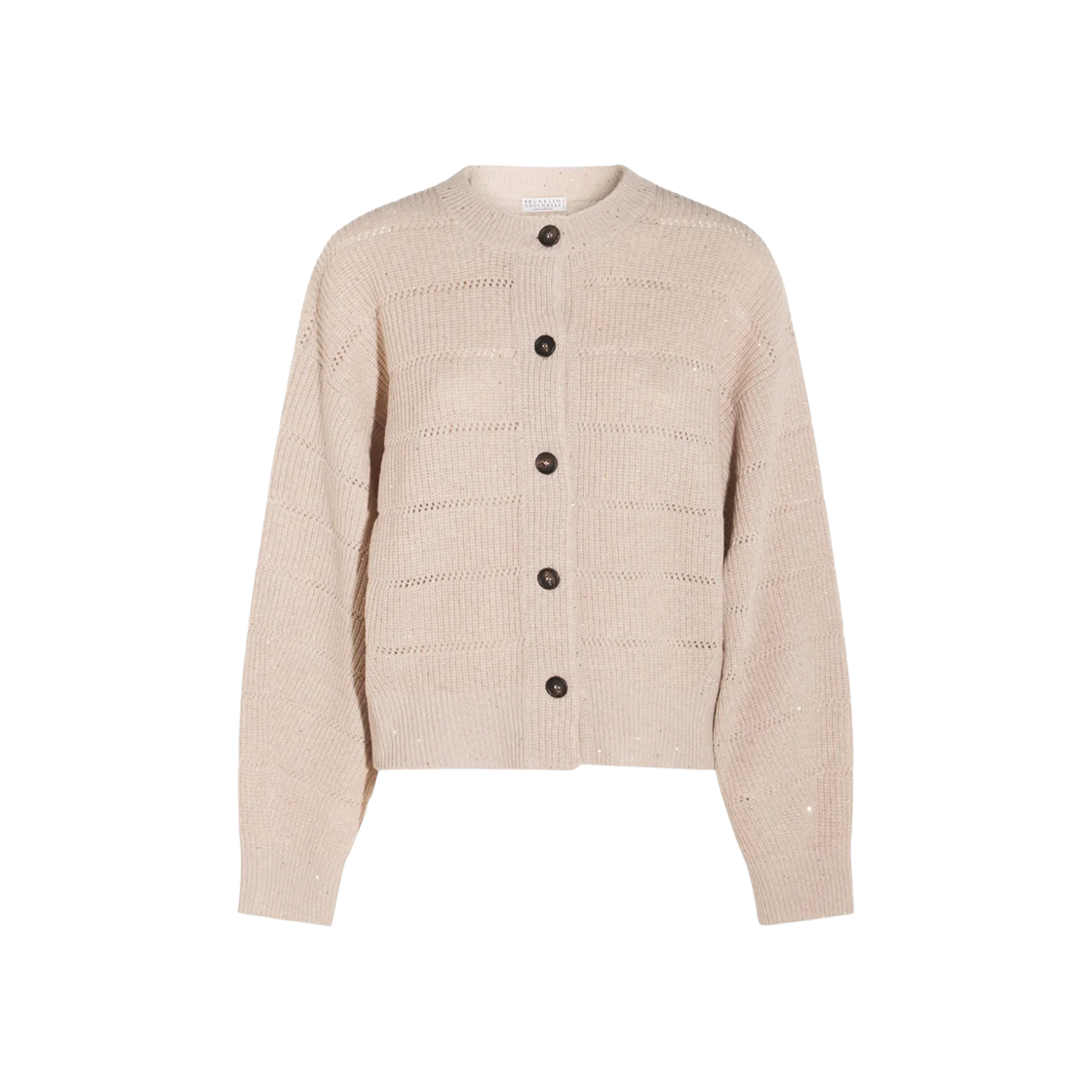 (W) 브루넬로 쿠치넬리 코튼 립드 네트 가디건 베이지