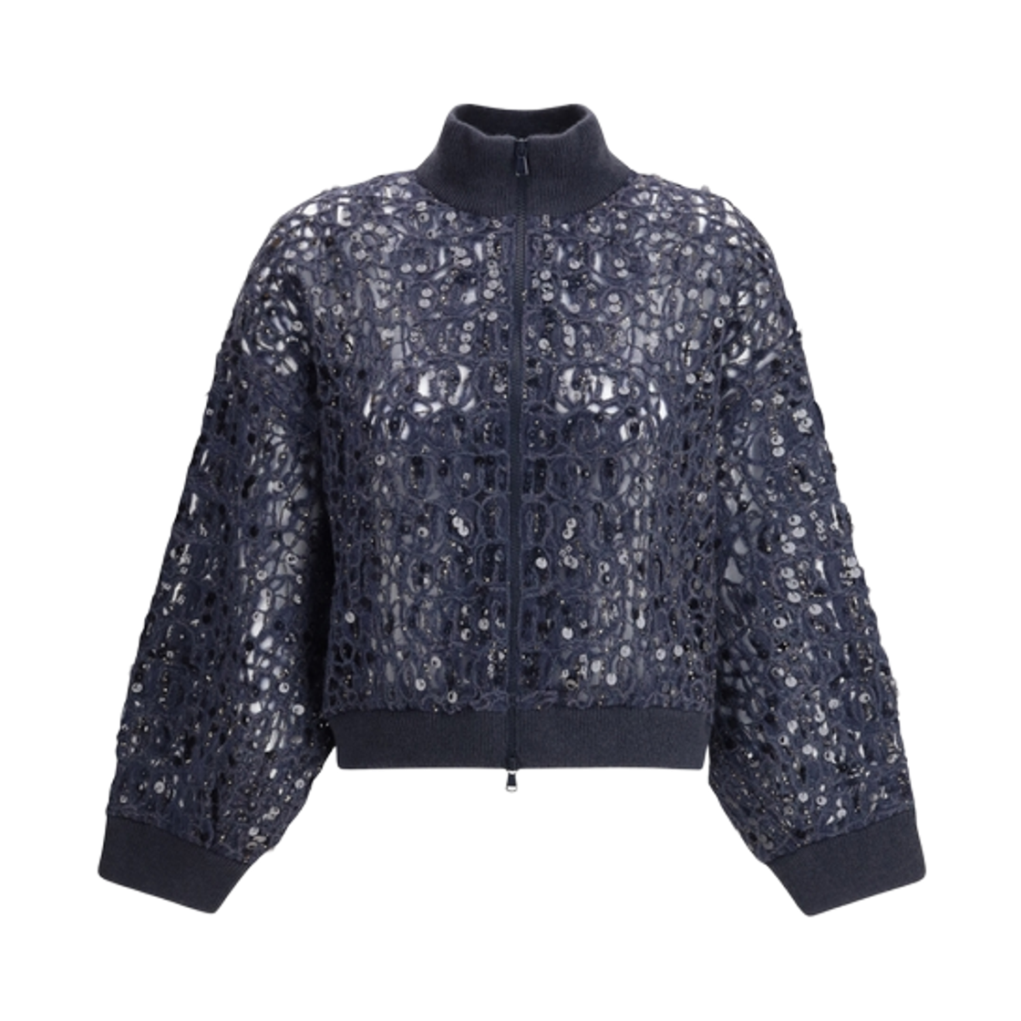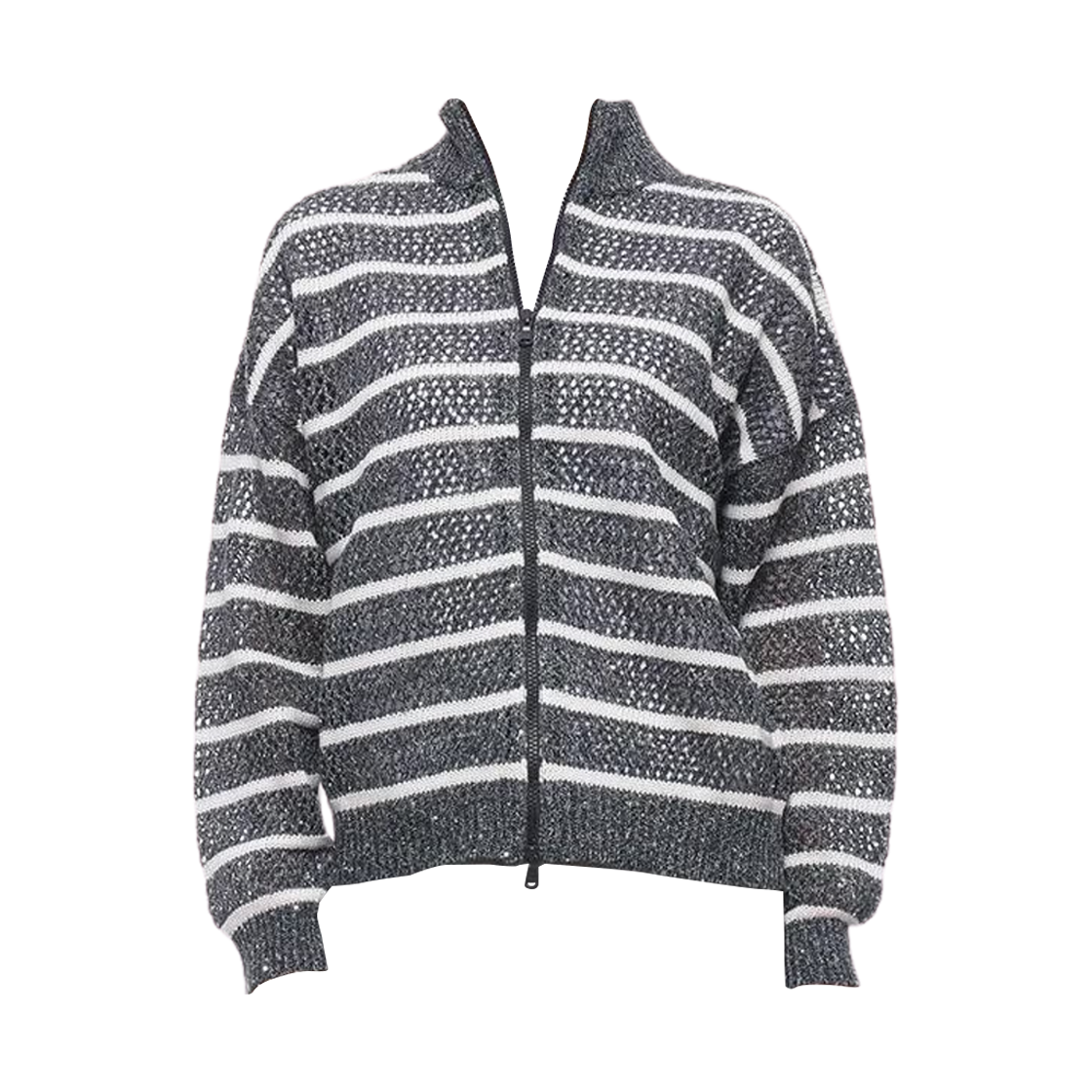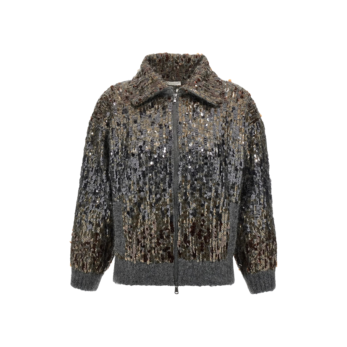 (W) 브루넬로 쿠치넬리 시퀸 엠벨리시드 지퍼 가디건 그레이