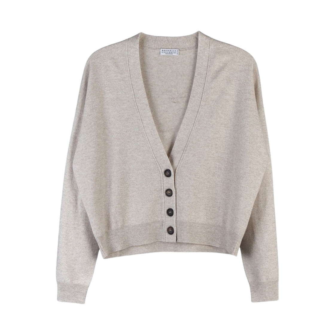 (W) 브루넬로 쿠치넬리 크롭 브이넥 가디건 베이지