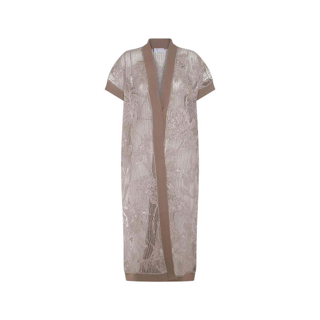 (W) 브루넬로 쿠치넬리 자수 메쉬 롱 가디건 베이지