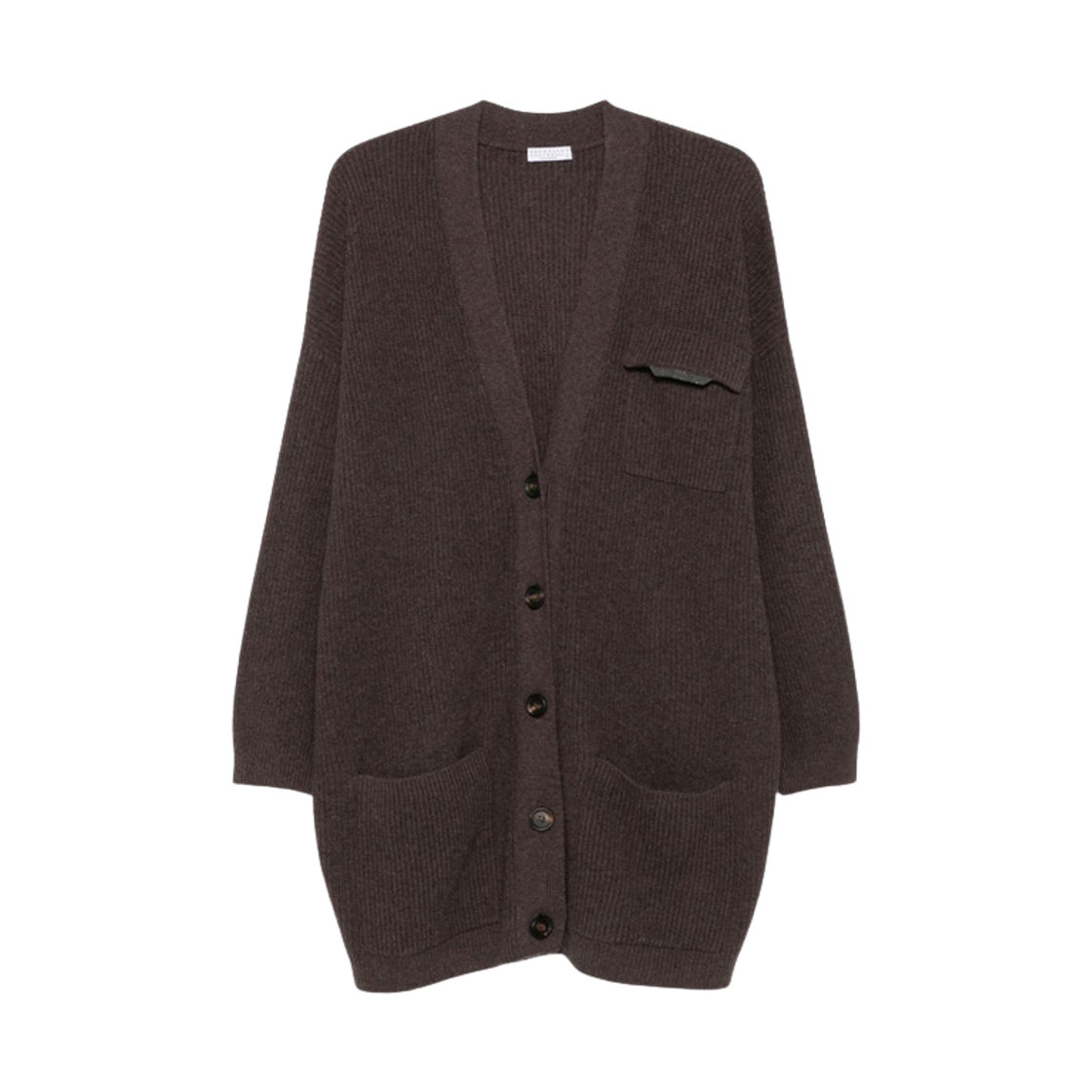 (W) 브루넬로 쿠치넬리 캐시미어 브이넥 가디건 브라운