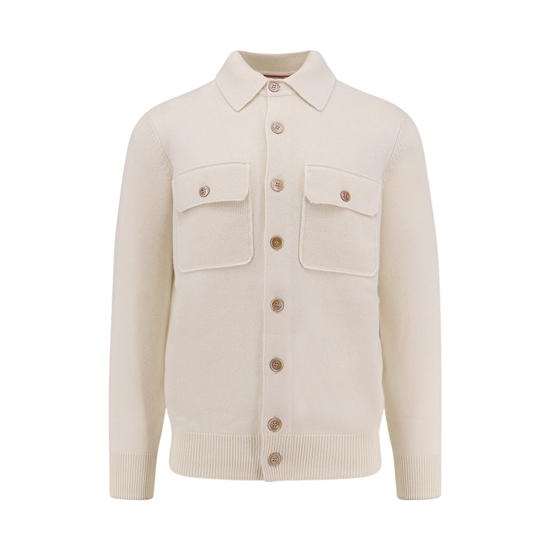 브루넬로 쿠치넬리 체스트 포켓 캐시미어 셔츠 스타일 가디건 파나마