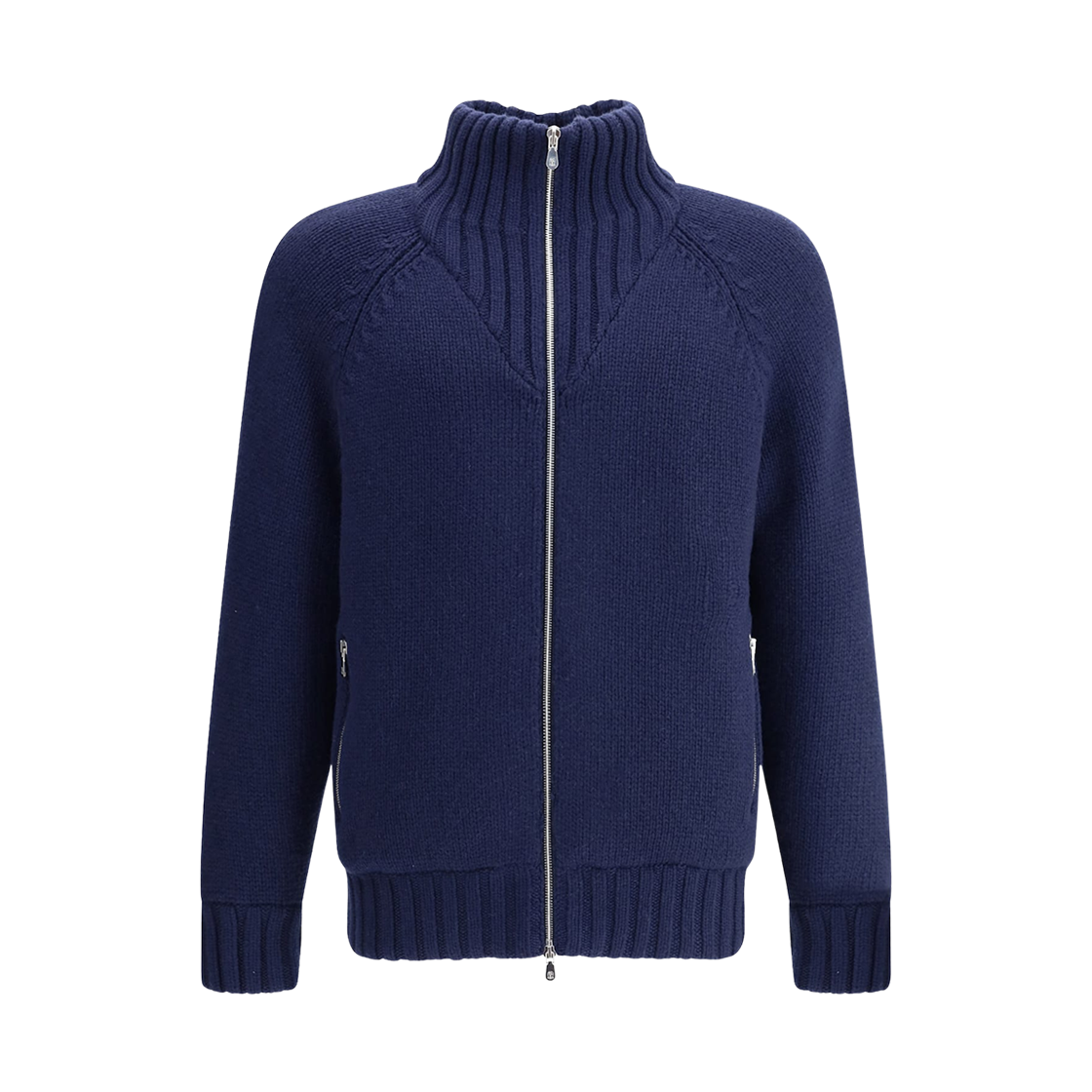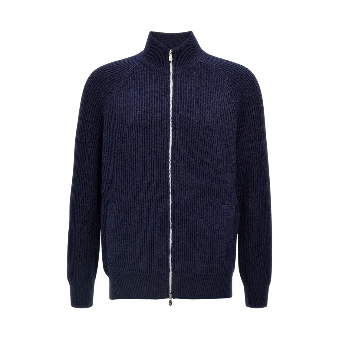 브루넬로 쿠치넬리 캐시미어 터틀넥 지퍼 가디건 사파이어