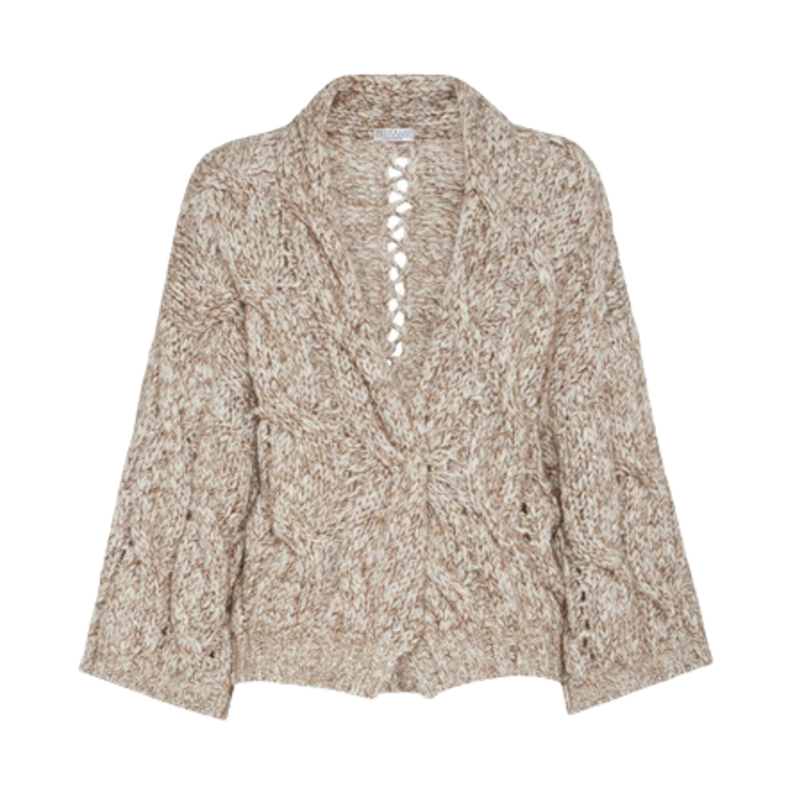 (W) 브루넬로 쿠치넬리 케이블 니트 가디건 브라운