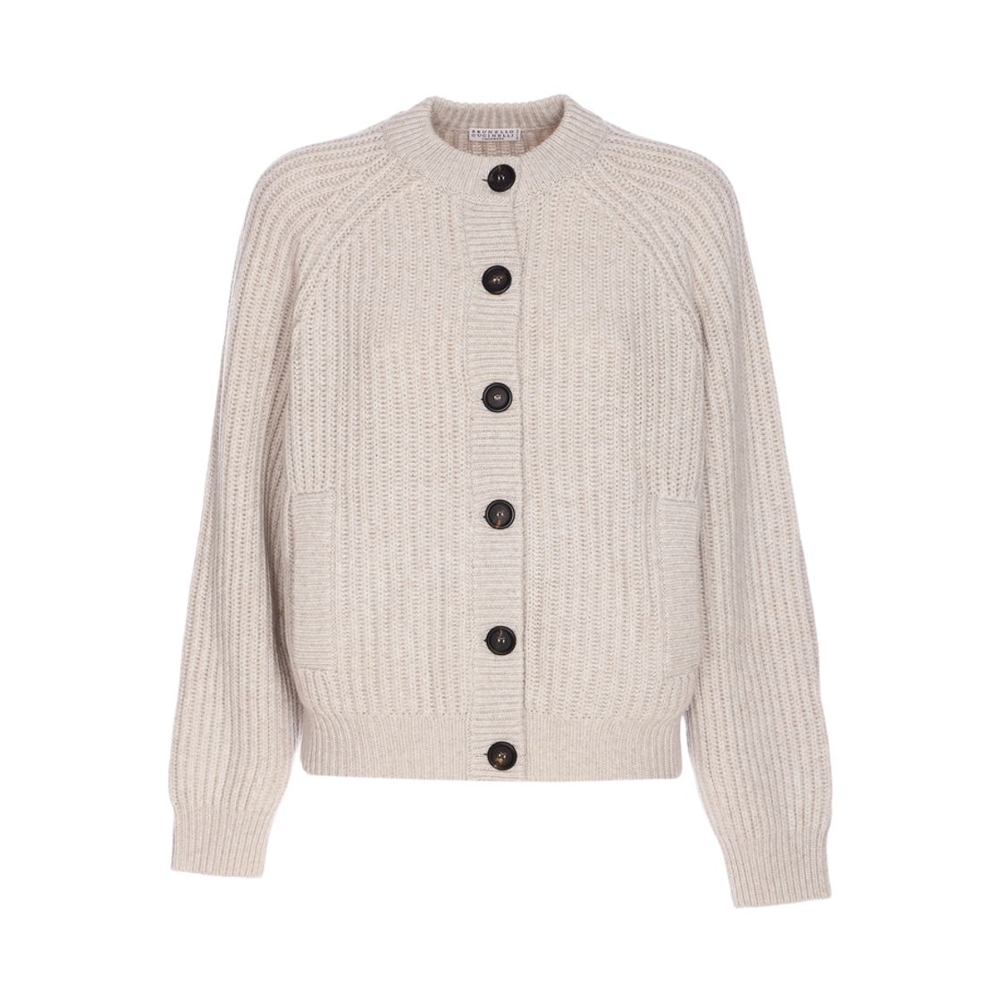 (W) 브루넬로 쿠치넬리 캐시미어 블렌드 청키 니트 가디건 내츄럴