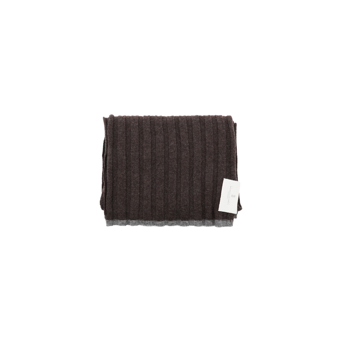 브루넬로 쿠치넬리 캐시미어 립 니트 스카프 브라운