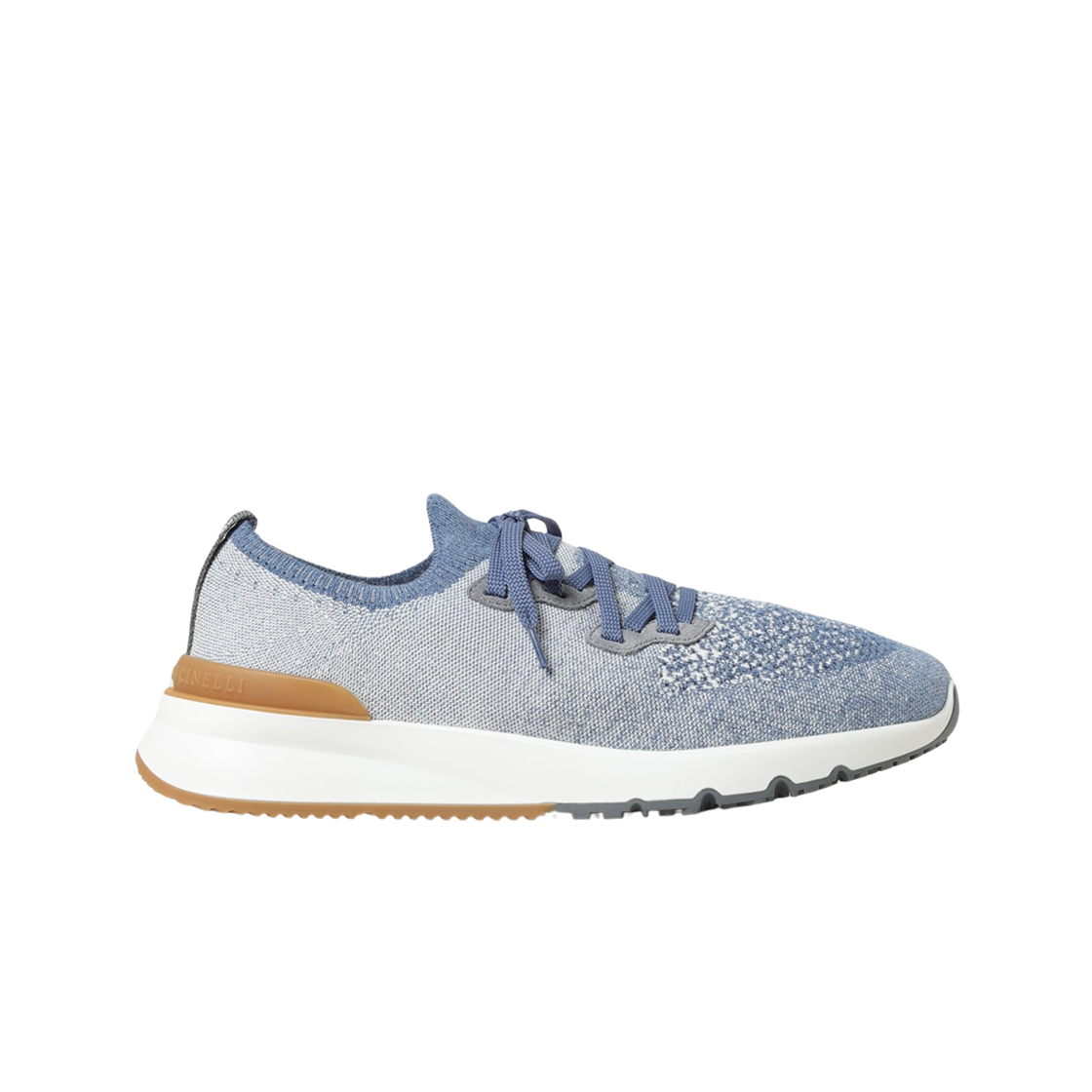 브루넬로 쿠치넬리 히트 본디드 디테일 테크노 코튼 니트 러너 블루