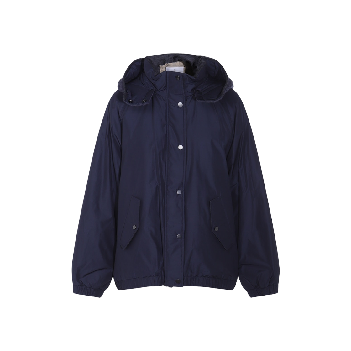 브루넬로 쿠치넬리 디테처블 후드 본디드 태피터 다운 자켓 블루