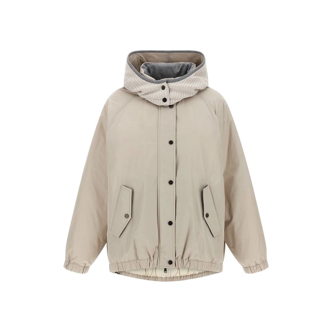 브루넬로 쿠치넬리 디테처블 후드 본디드 태피터 다운 자켓 베이지