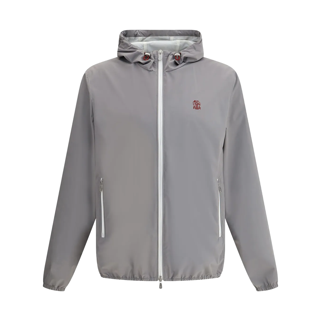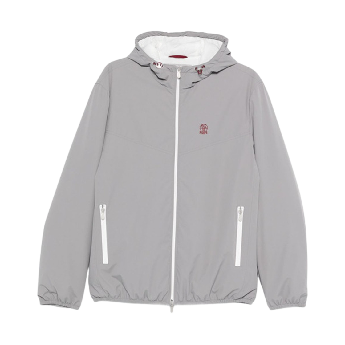 브루넬로 쿠치넬리 로고 본디드 나일론 후드 자켓 그레이
