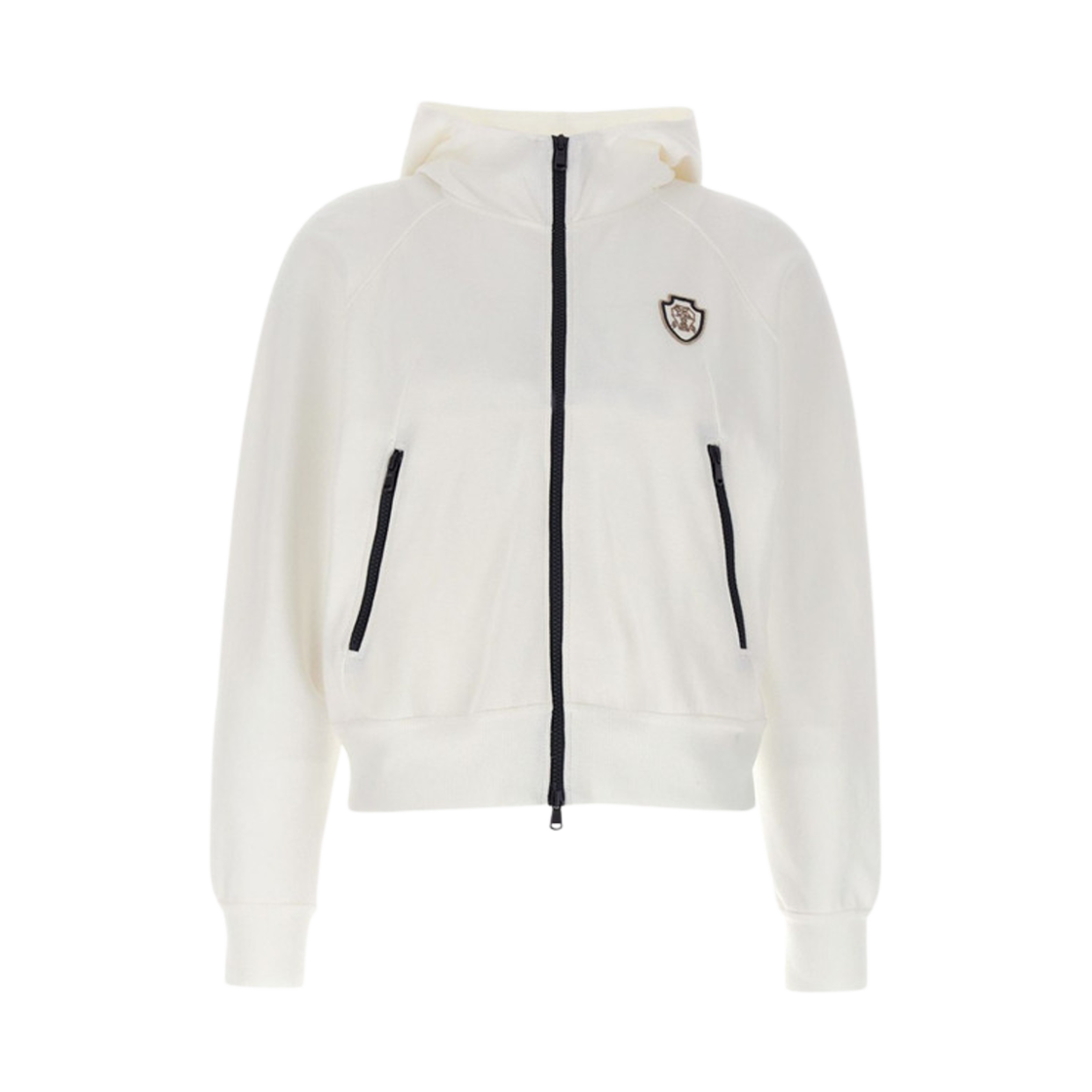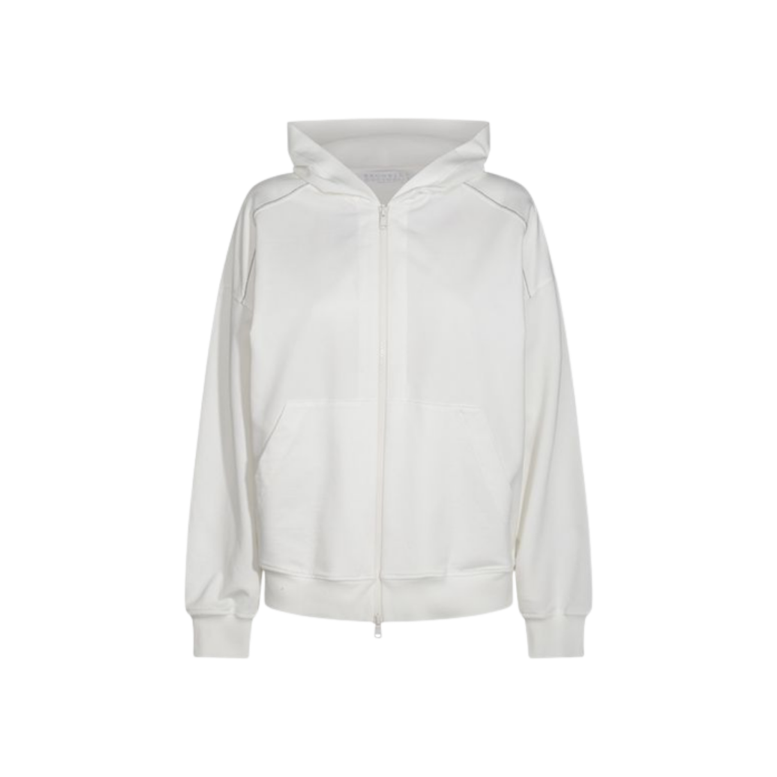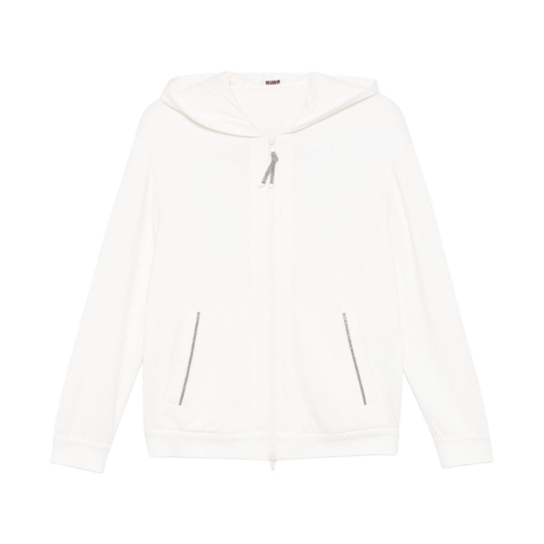 (W) 브루넬로 쿠치넬리 스트레치 코튼 라이트웨이트 프렌치 테리 지퍼 샤이니 트림 후드 스웨트셔츠 화이트