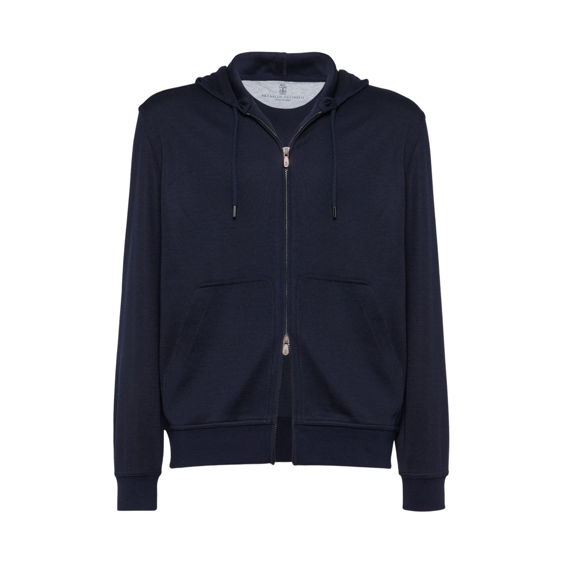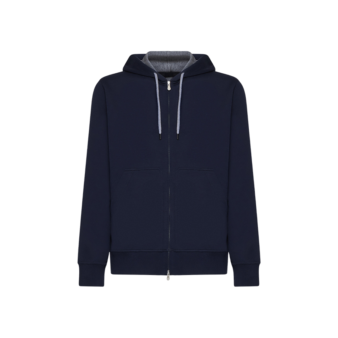 브루넬로 쿠치넬리 코튼 캐시미어 실크 프렌치 테리 더블 클로스 지퍼 후드 스웨트셔츠 코발트