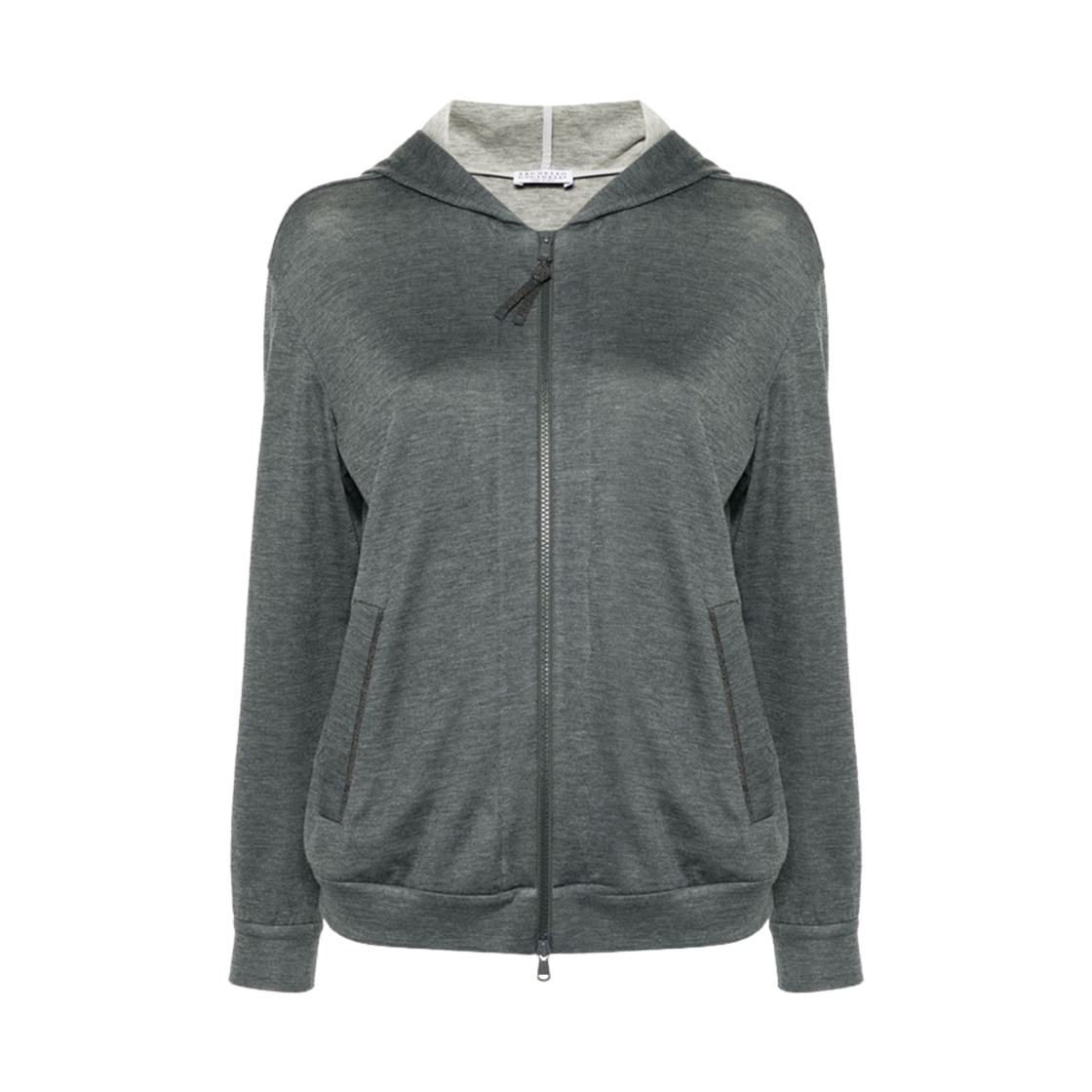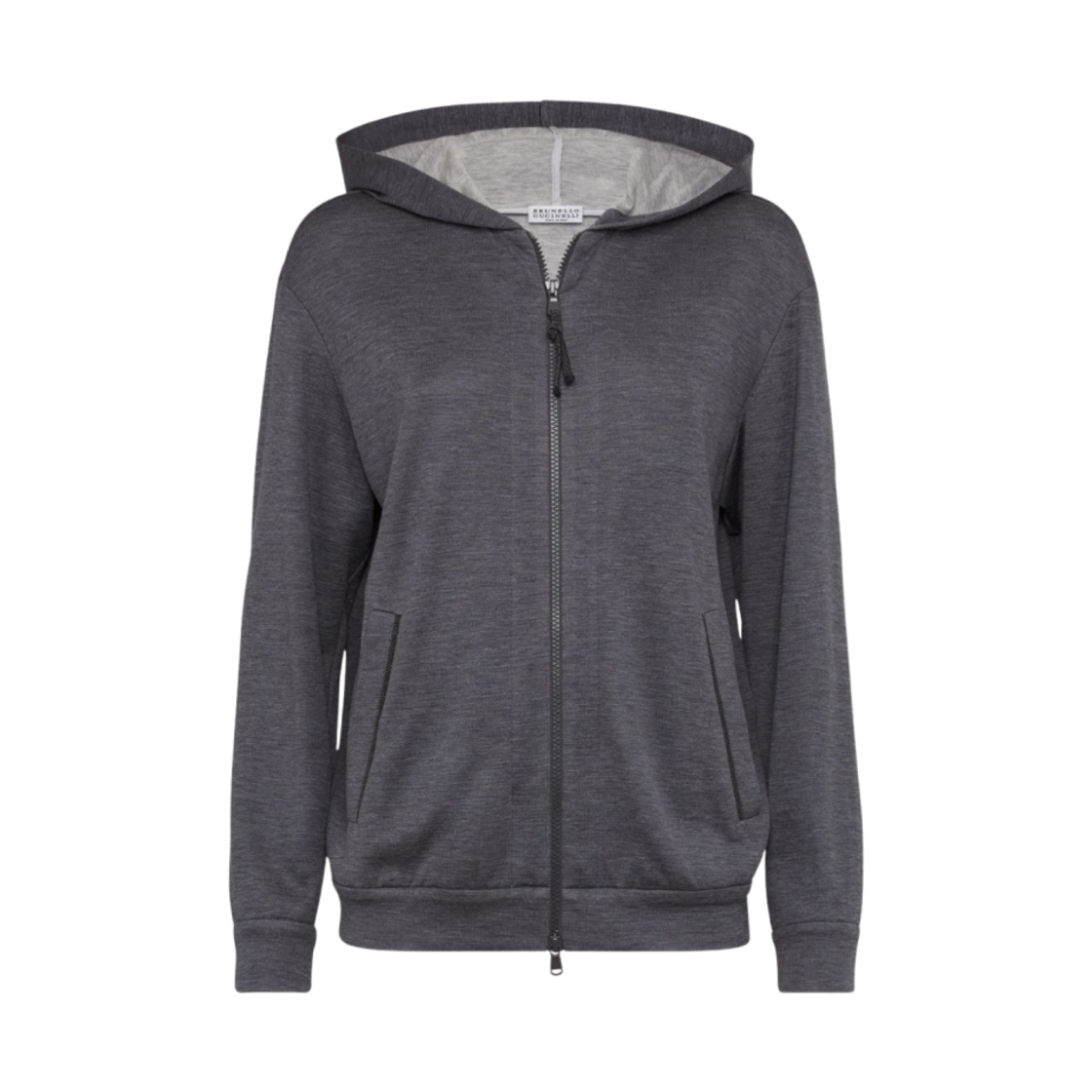(W) 브루넬로 쿠치넬리 코튼 실크 인터로크 프레셔스 지퍼 풀 후드 스웨트셔츠 다크 그레이