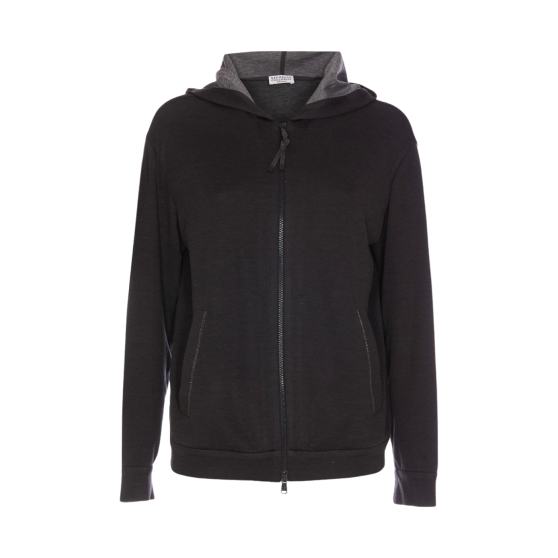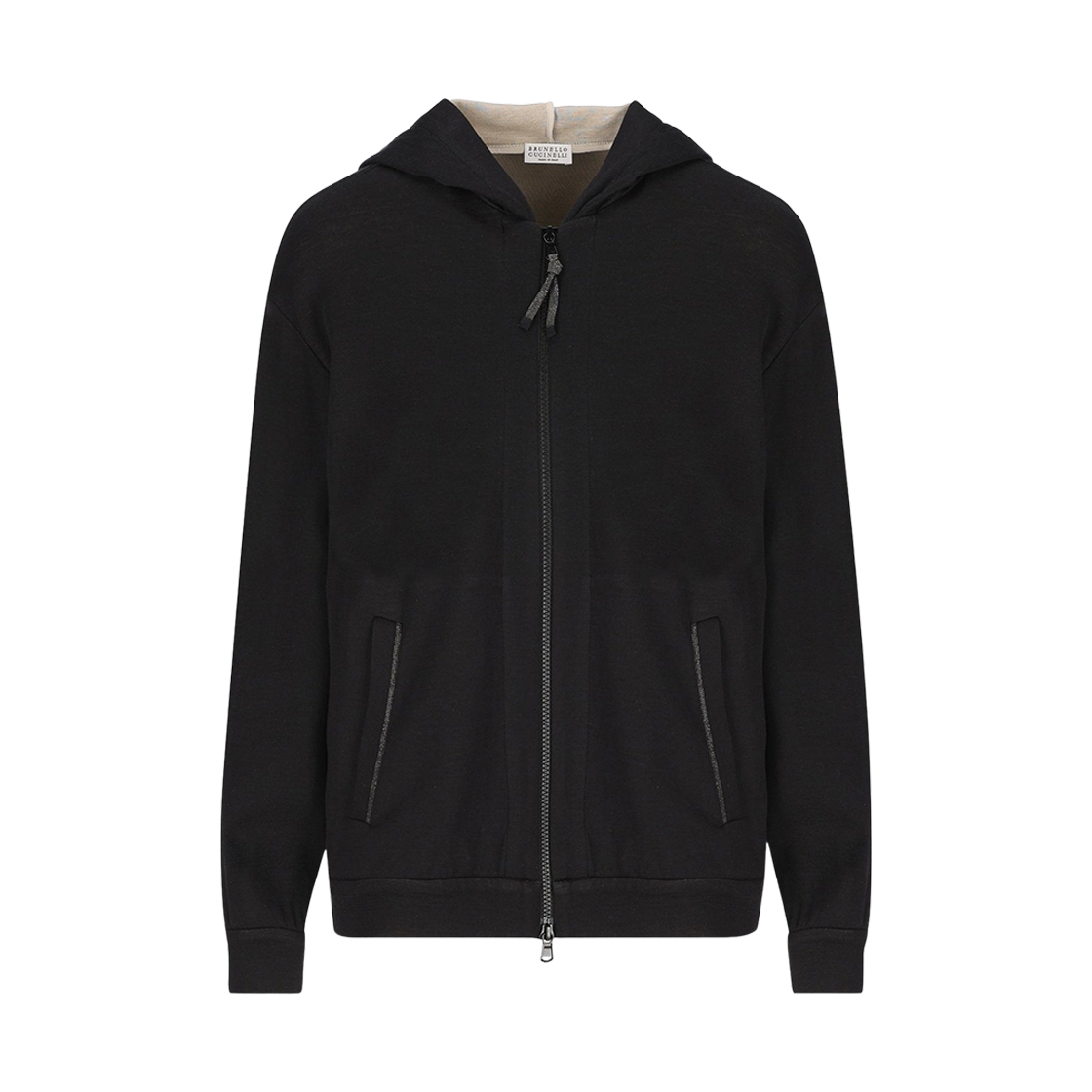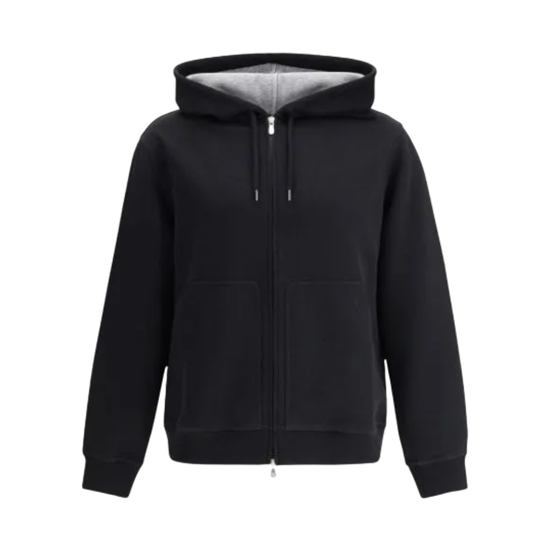 (W) 브루넬로 쿠치넬리 코튼 실크 인터로크 프레셔스 지퍼 풀 후드 스웨트셔츠 블랙