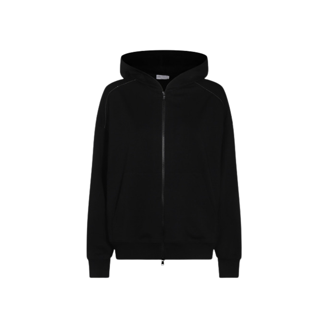 (W) 브루넬로 쿠치넬리 스트레치 코튼 라이트웨이트 프렌치 테리 지퍼 샤이니 트림 후드 스웨트셔츠 블랙