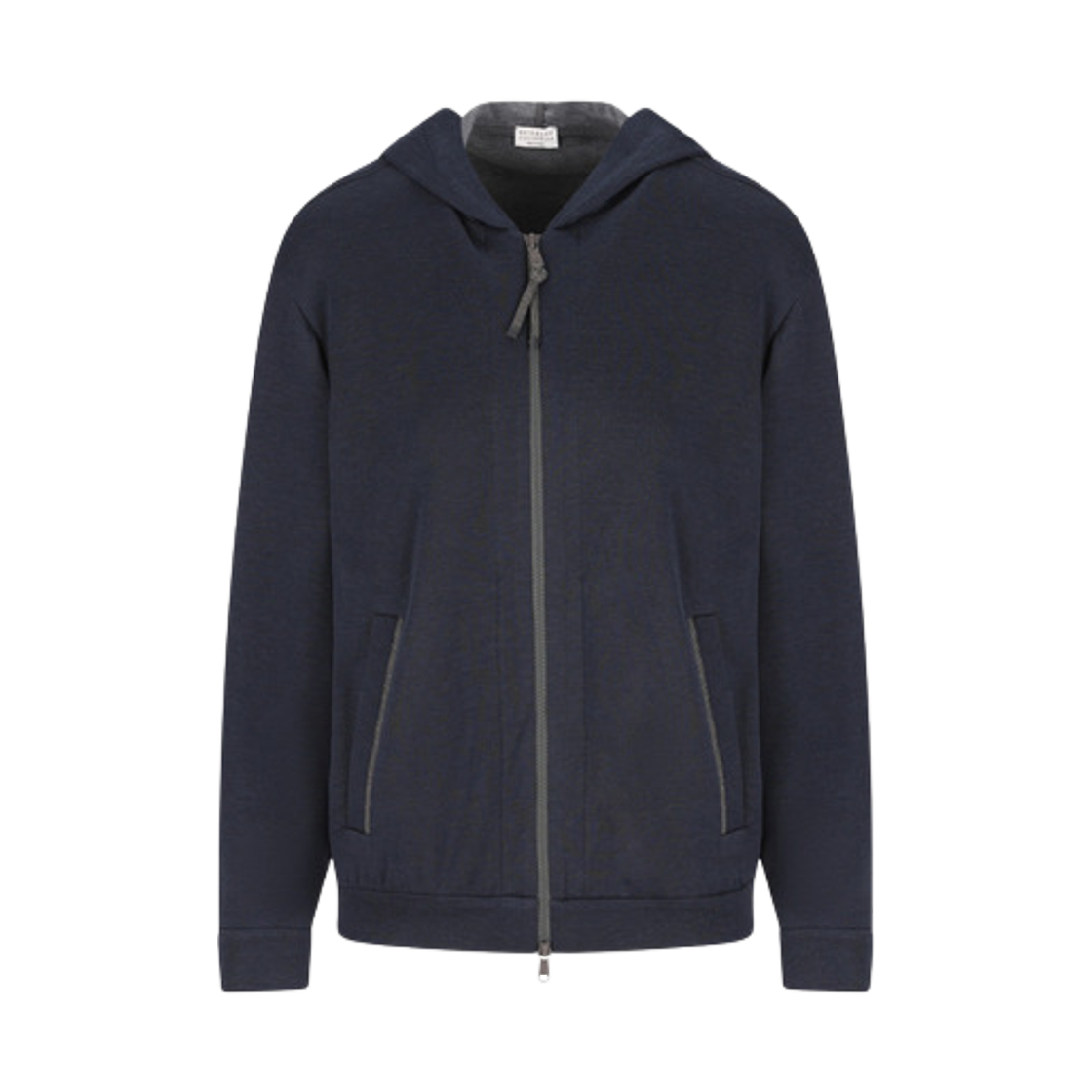 브루넬로 쿠치넬리 코튼 후드 집업 블루