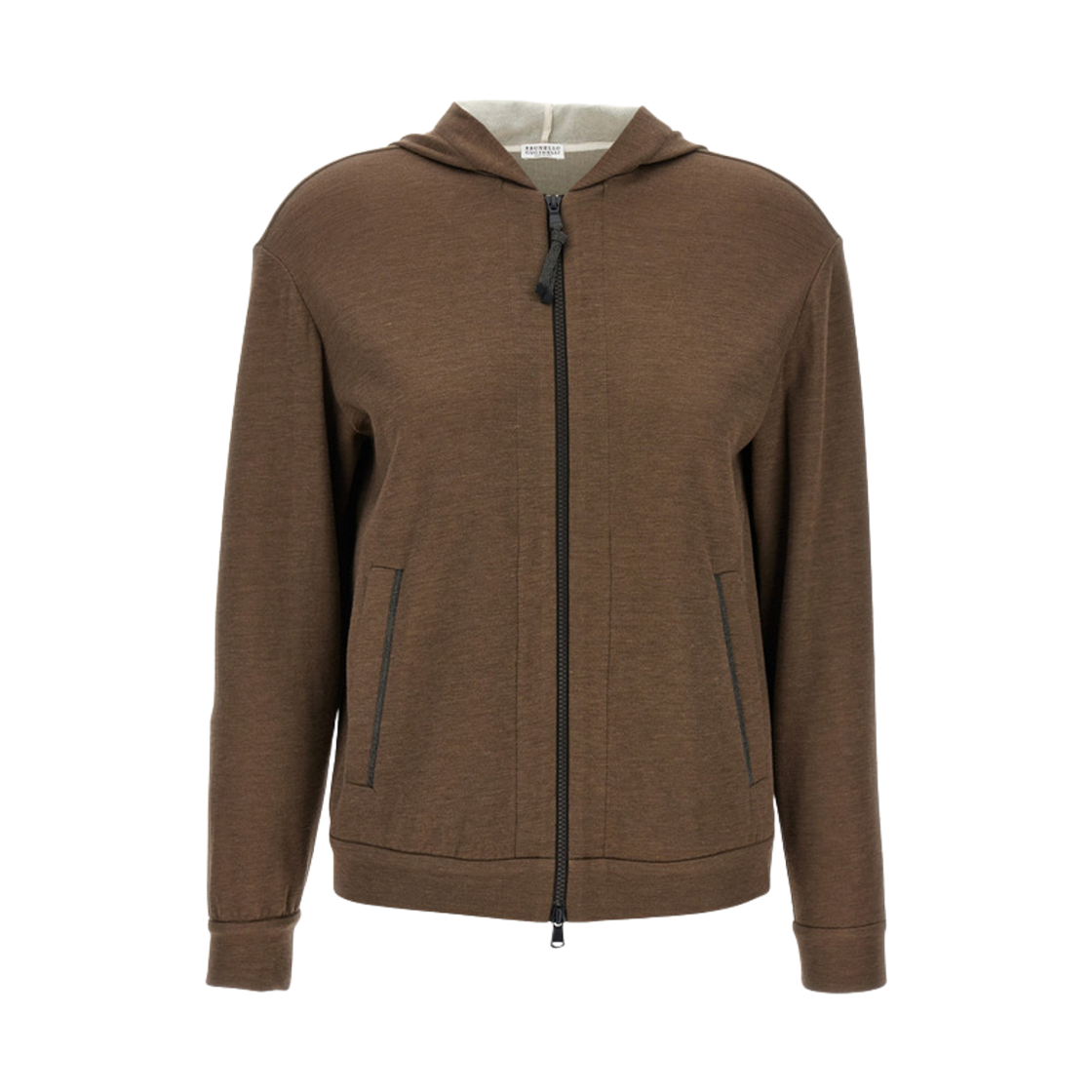 (W) 브루넬로 쿠치넬리 모닐리 코튼 집 후드 브라운