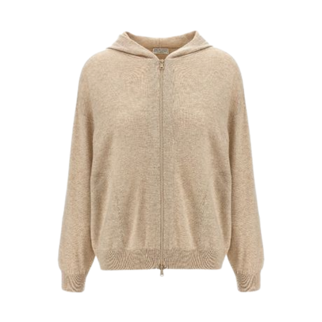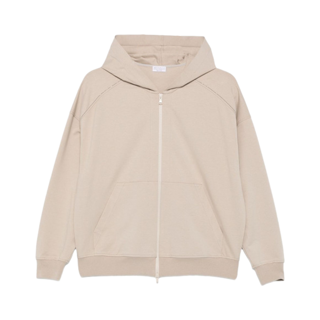 (W) 브루넬로 쿠치넬리 코튼 실크 인터로크 프레셔스 지퍼 풀 후드 스웨트셔츠 베이지