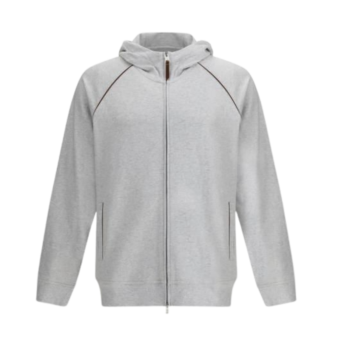 브루넬로 쿠치넬리 테크노 코튼 프렌치 테리 지퍼 파이핑 후드 스웨트셔츠 그레이
