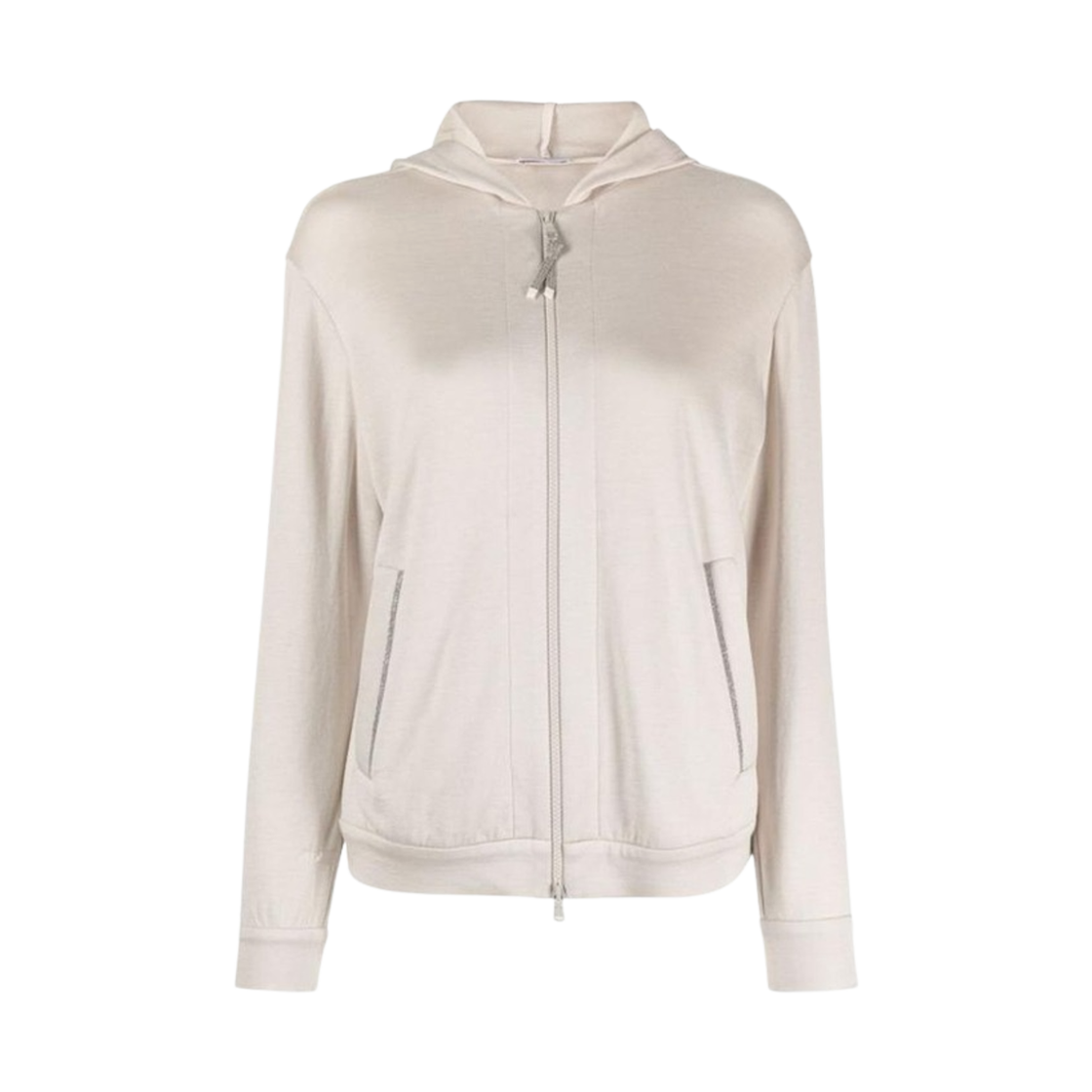 (W) 브루넬로 쿠치넬리 스트레치 코튼 라이트웨이트 프렌치 테리 지퍼 샤이니 트림 후드 스웨트셔츠 베이지