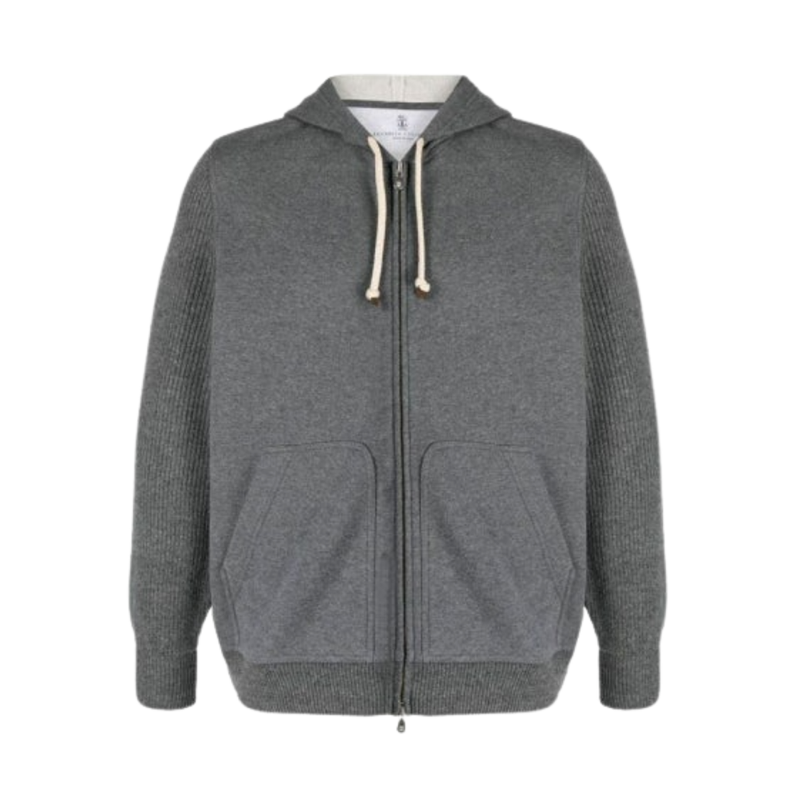 브루넬로 쿠치넬리 니트 슬리브 후드 집업 그레이