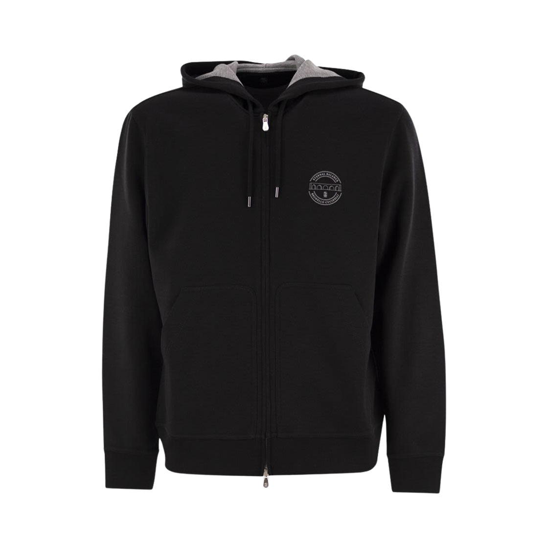 브루넬로 쿠치넬리 코튼 로고 프린트 후드 집업 블랙