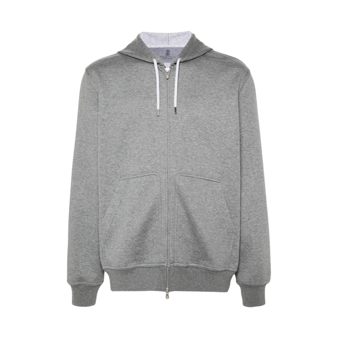 브루넬로 쿠치넬리 코튼 캐시미어 실크 프렌치 테리 더블 클로스 지퍼 후드 스웨트셔츠 그레이