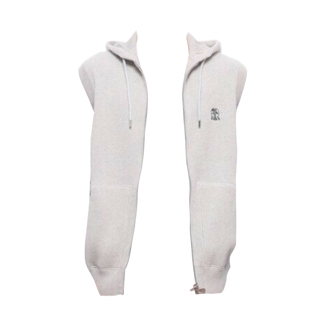 브루넬로 쿠치넬리 니트 슬리브 후드 집업 화이트
