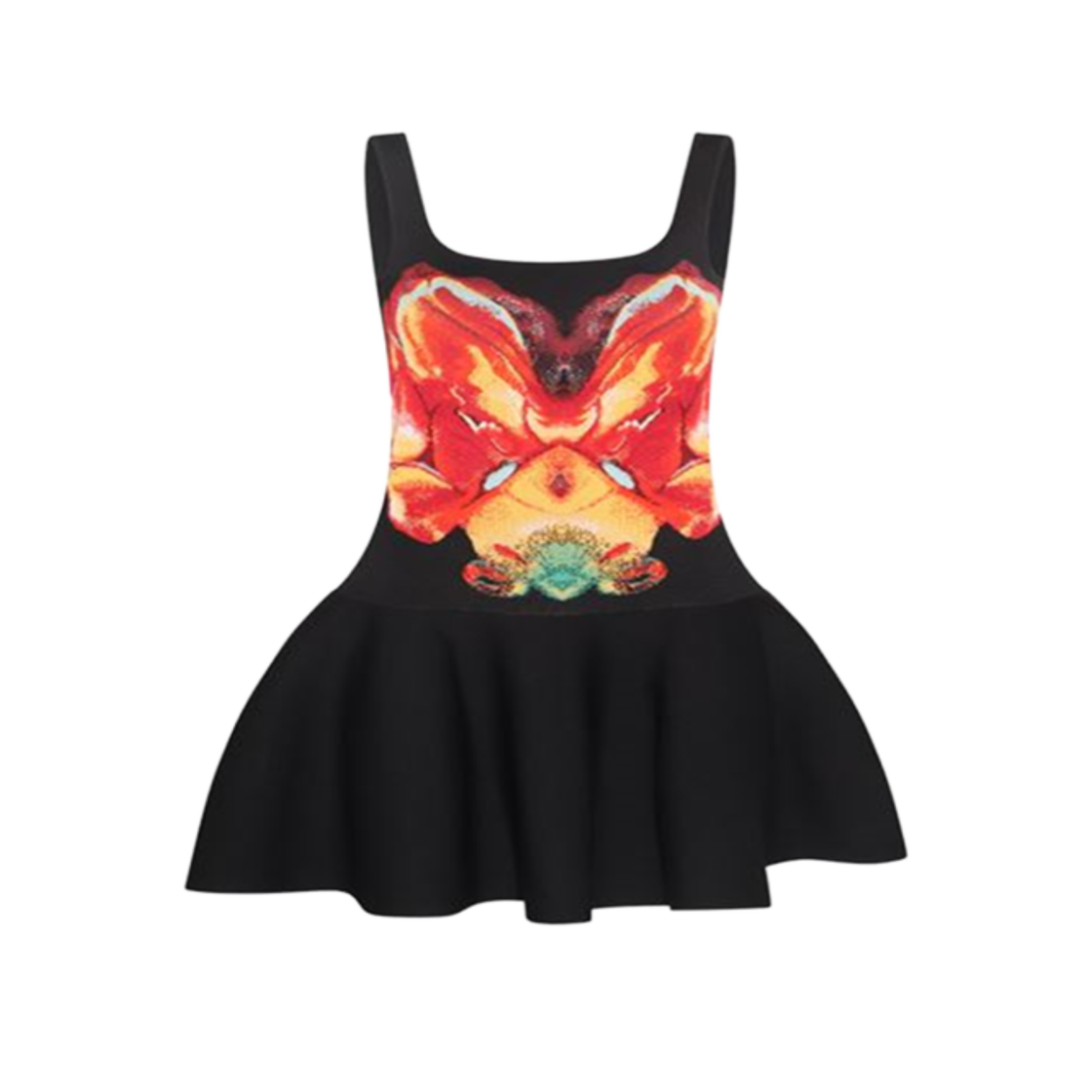 (W) 알렉산더 맥퀸 오키드 프린트 드레스 블랙