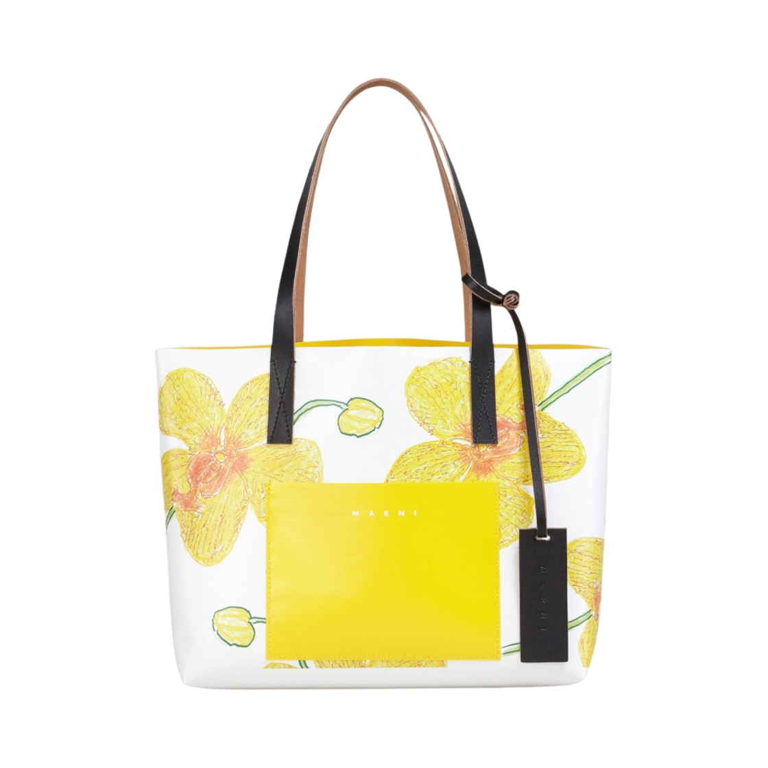 마르니 PVC 오키드 프린트 쇼핑백 옐로우 메이즈 에시드 블랙