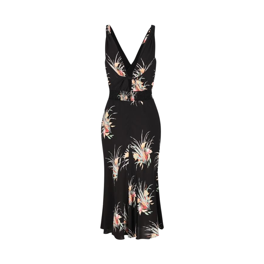 (W) 프라다 오키드 프린트 미디 드레스 블랙