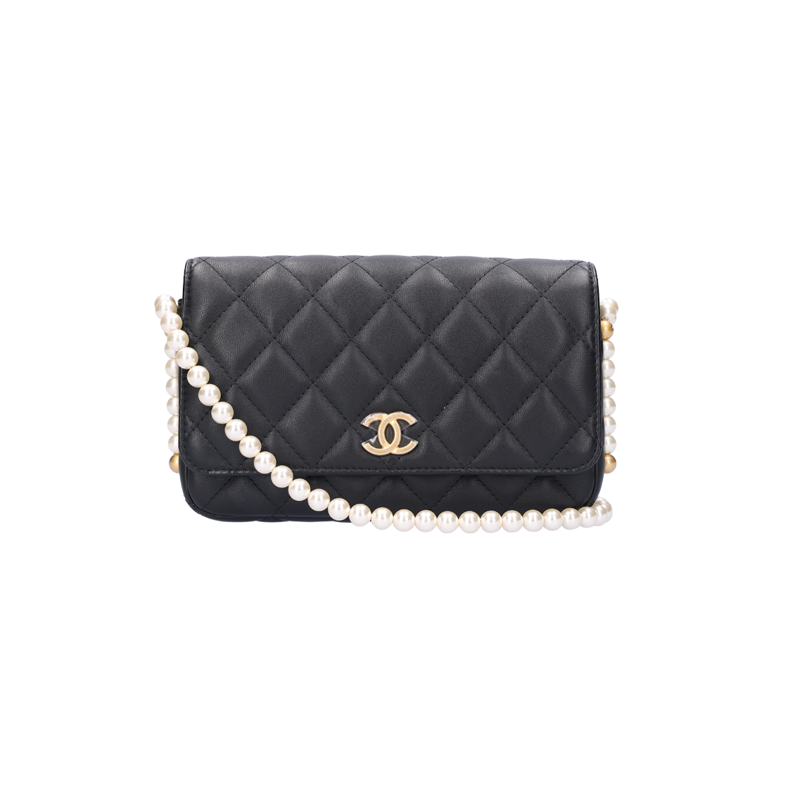 샤넬 AP2190 펄 체인 지갑 블랙 금장