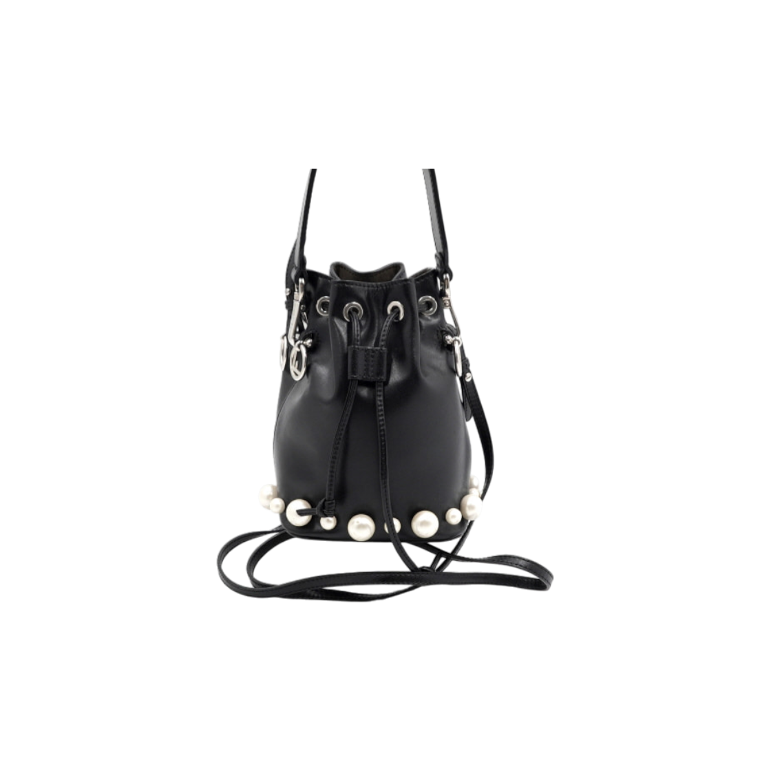 펜디 8BS010 블랙 레더 펄 장식 드로우스트링 백 aa52096