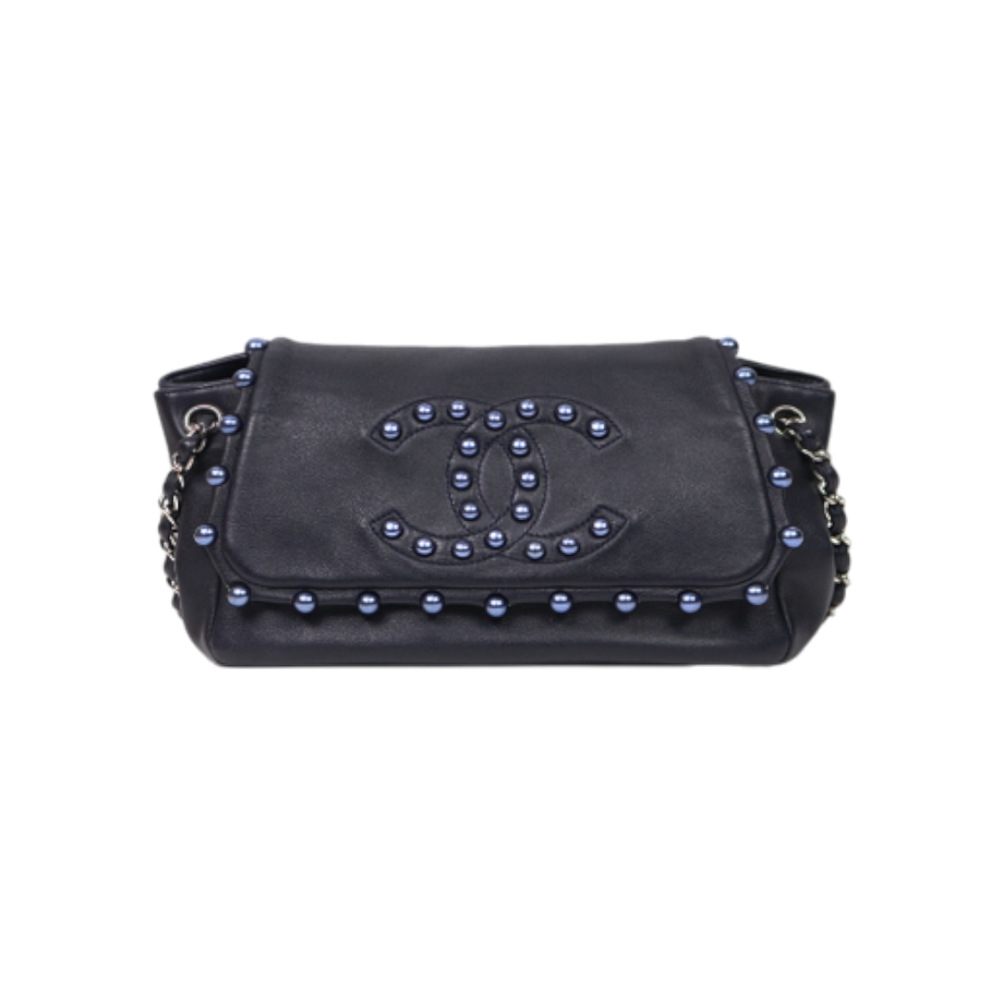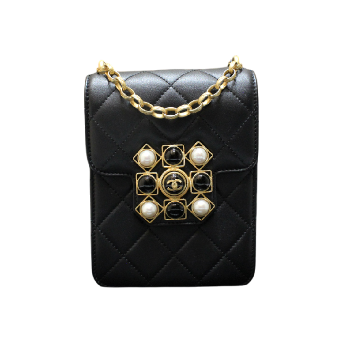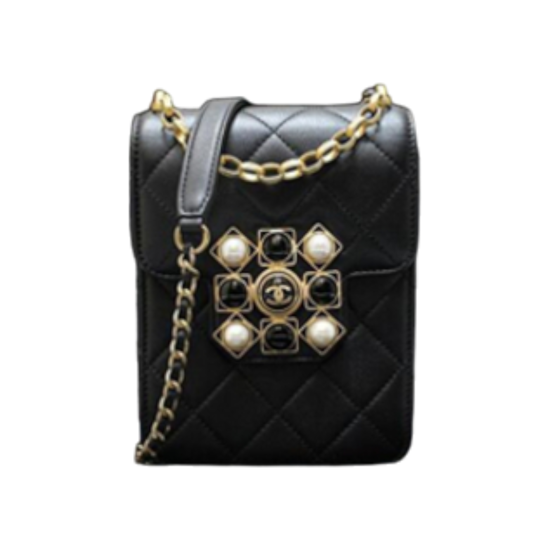 샤넬 AS2518 블랙 램스킨 퀼티드 CC 글라스 펄(진주) 장식 백 aa53457