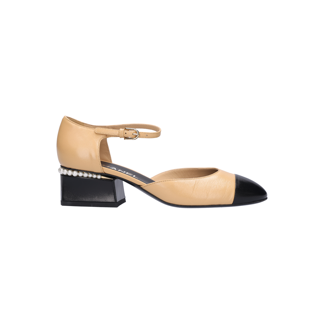 샤넬 G39250 투톤 펄 슬링백 고트스킨 베이지 블랙