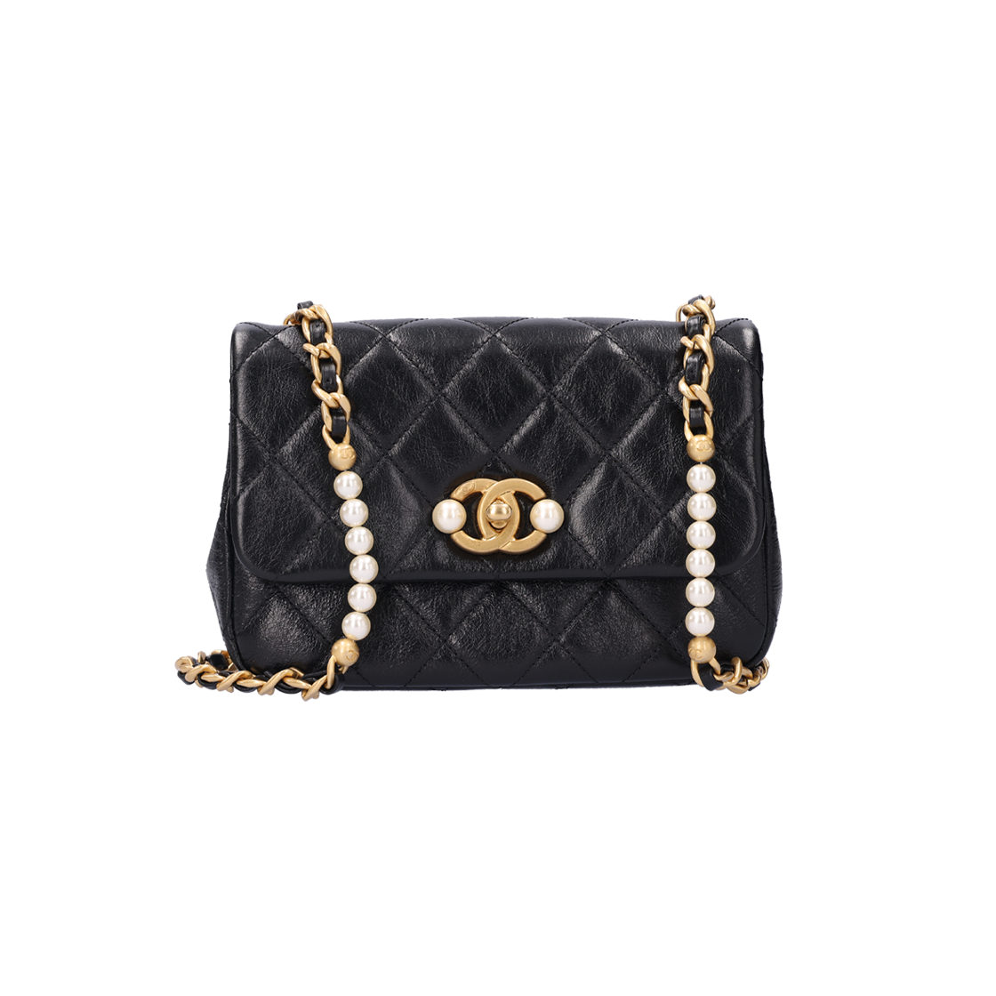 샤넬 AS3000 체인 펄 미니 플랩백 카프스킨 블랙 금장