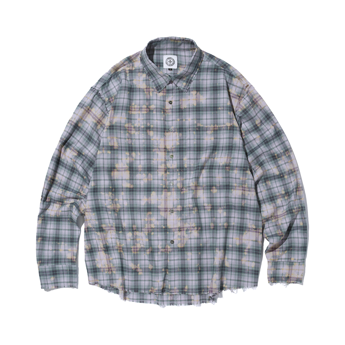 더바이닐하우스 블리치드 체크 셔츠 그린