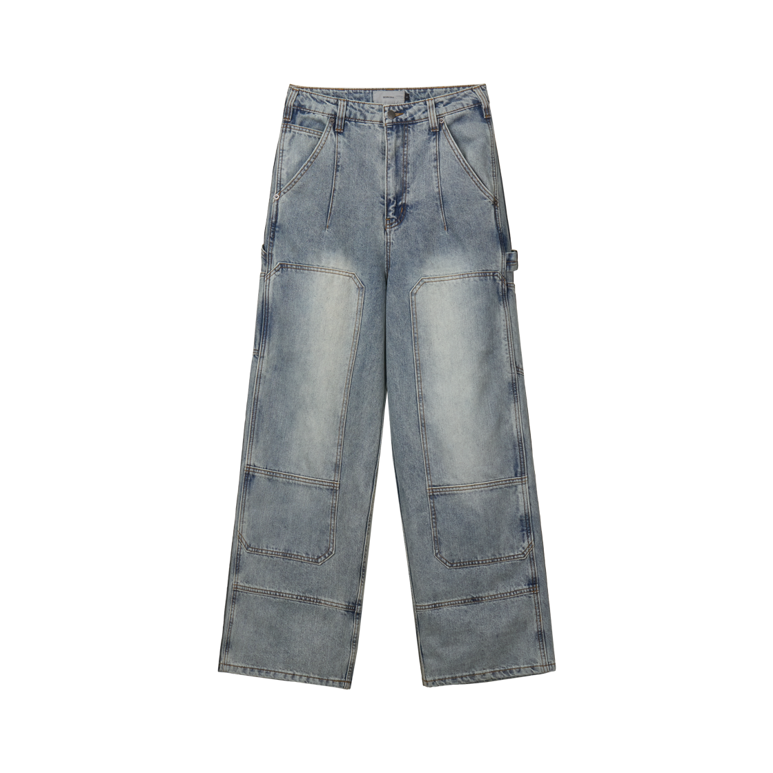 비긴202 원턱 와이드 카펜터 데님 팬츠 블리치드 블루