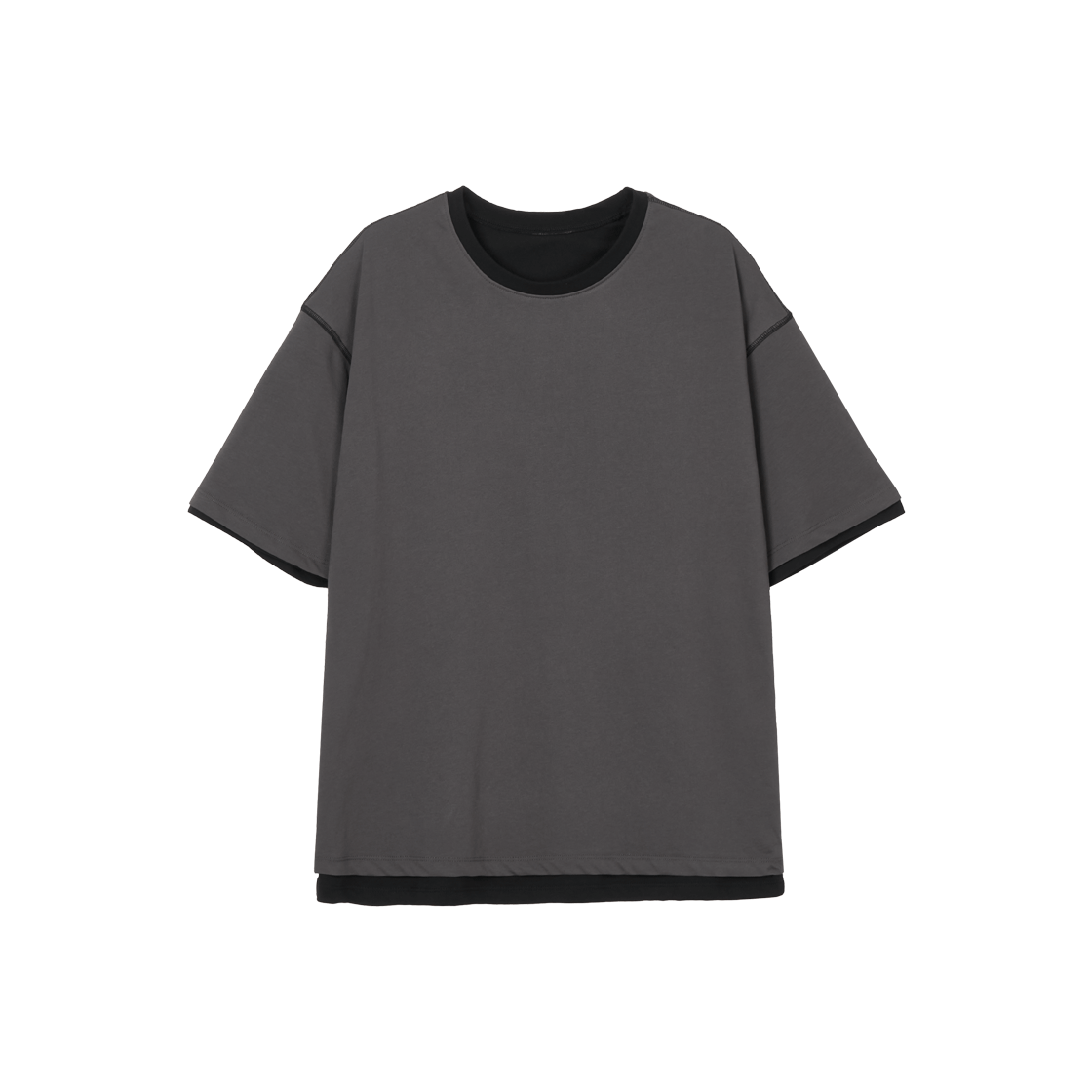 비긴202 커버 스티치 레이어드 티셔츠 그레이 블랙