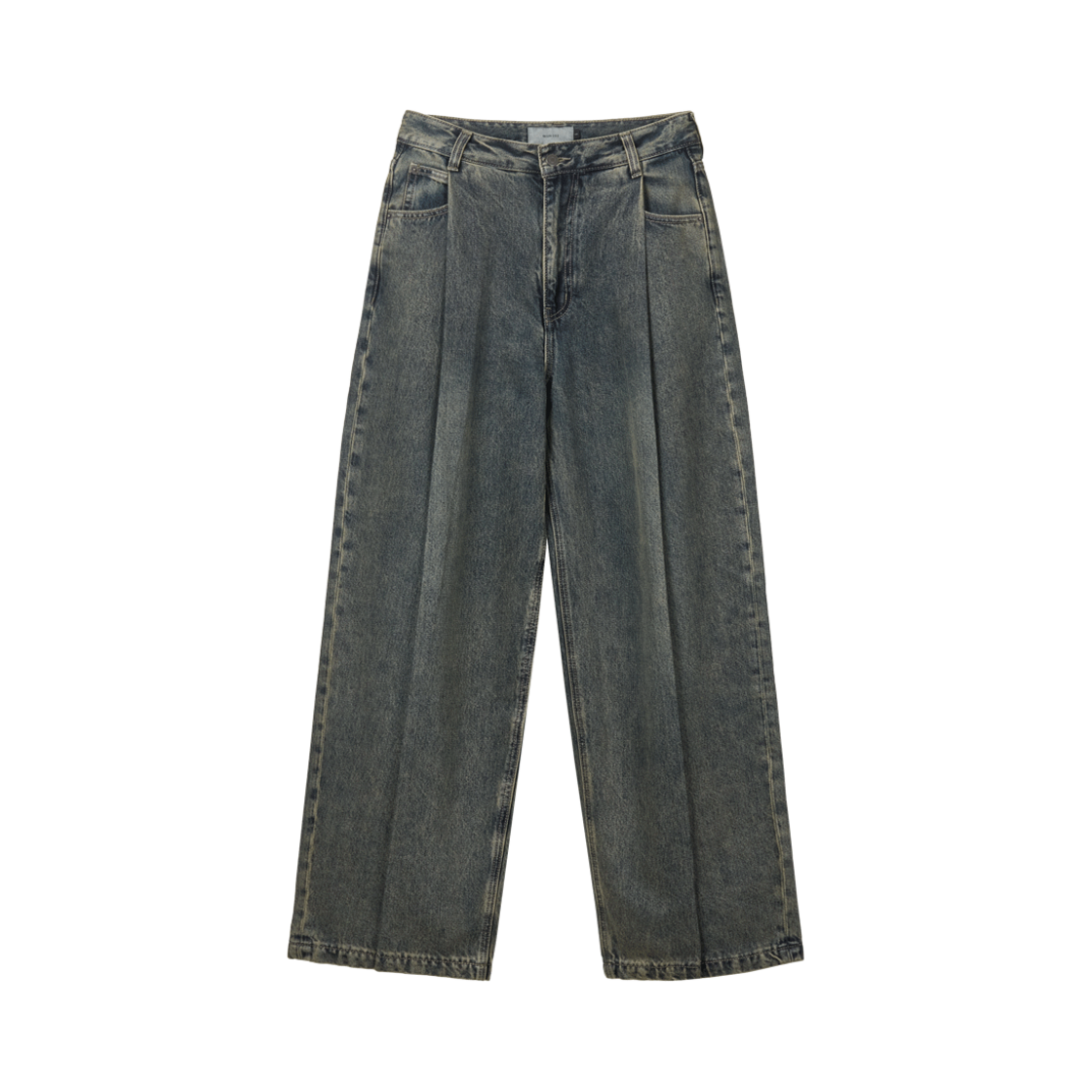 비긴202 원턱 와이드 슬랙스 데님 팬츠 데저트 블루