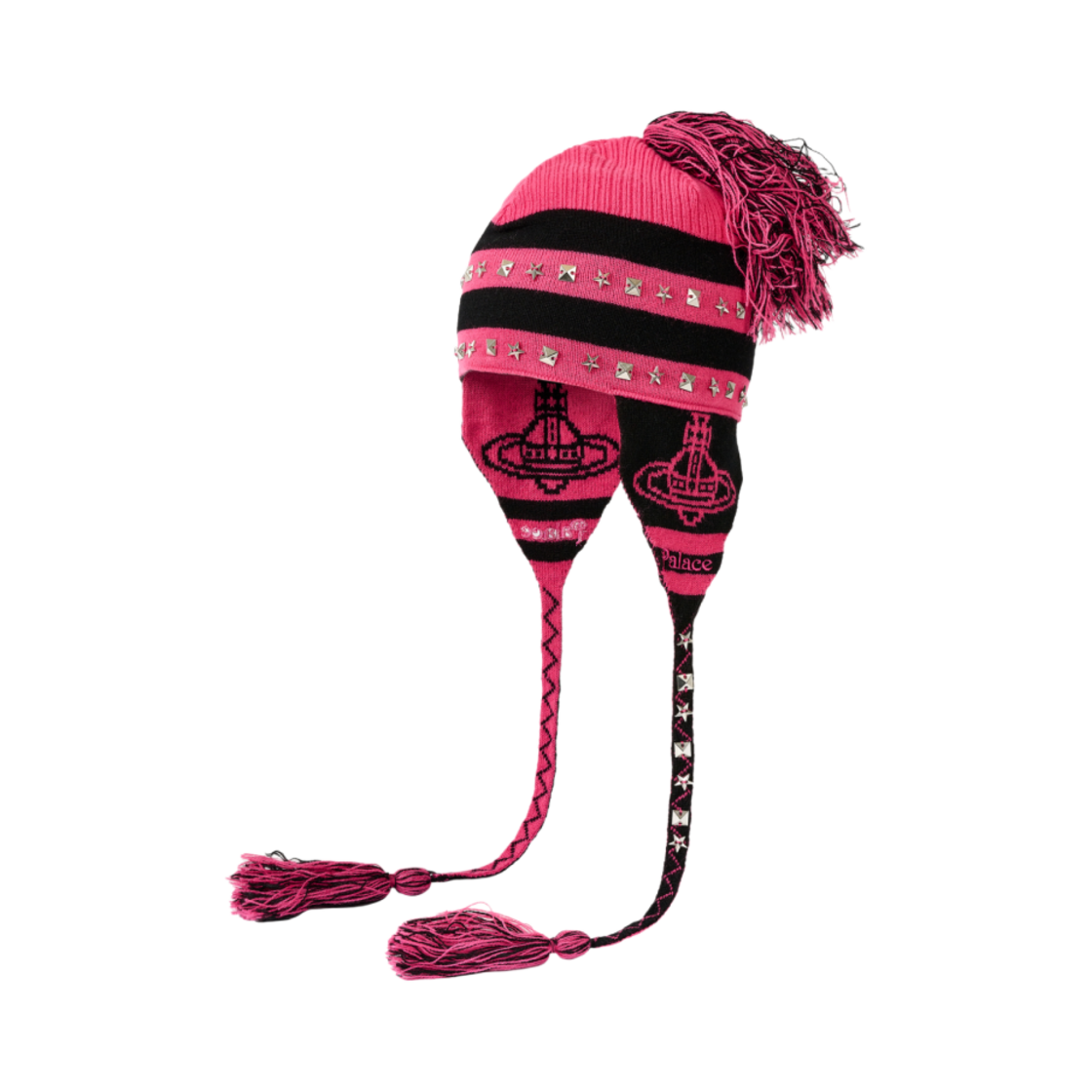 팔라스 x 비비안 웨스트우드 오브 니트 이어플랩 비니 핑크 블랙 - 24FW